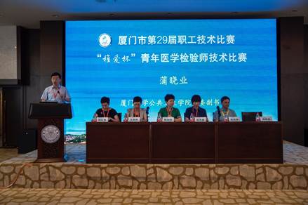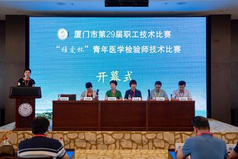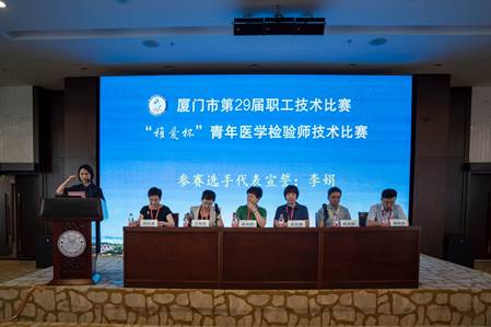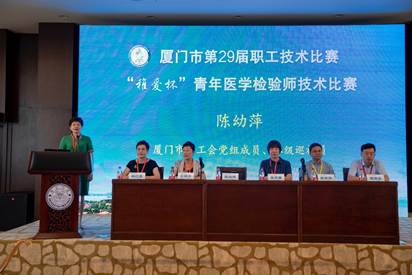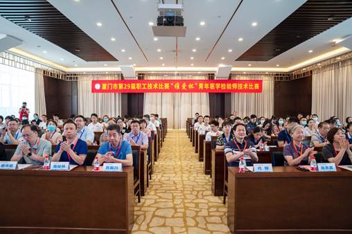 8月27日,厦门市第二十九届职工技术比赛“稚爱杯”青年医学检验师技术比赛在厦门大学翔安校区顺利举办。本次大赛由厦门市劳动竞赛委员会主办,厦门市总工会、厦门市卫生健康委员会指导,厦门市妇幼保健院(厦门大学附属妇女儿童医院)、厦门大学公共卫生学院、厦门市医院协会联合承办。选拔出的来自全市18家二级以上医疗机构及14家基层医疗机构的共63名青年参赛选手同台竞技,福建省临床检验中心主任陈发林担任本次比赛裁判长,来自福州、漳州、泉州的8位检验专家担任技术裁判。厦门市总工会党组成员、二级巡视员陈幼萍,劳动和经技工作部二级调研员苏振川,厦门市卫生健康委员会工会主席陈艺真、副主席代翔,厦门市医院协会会长王挹青,厦门大学公共卫生学院党委书记张琥、党委副书记蒲晓业,厦门市妇幼保健院副院长周裕林,厦门市各检验分会主委,厦门大学与厦门医学院检验专业相关负责人,厦门各大医院的检验科主任,裁判及参赛选手共100余人出席开幕式。开幕式由厦门市妇幼保健院党委副书记钟红秀主持。