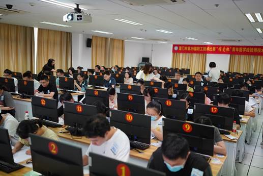 本次“稚爱杯”青年医学检验师技术比赛为厦门市第二十九届职工技术比赛的市级A类比赛项目,考试内容设置专业技能和专业知识比赛两部分,包括移液管使用技术、血涂片制备与染色技术、白细胞分类技术、临床检验图片辨识技术、临床检验三基知识、实验室生物安全知识等。为保证大赛的公平公正,大赛采取试题双盲原则,所有试题已于赛前进行密封保存,在来自厦门市卫生健康委员会的两位监督员的监督下,由来自学院的考务人员进行现场开题。