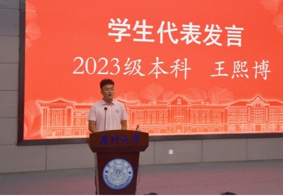 新生代表2023级本科生王熙博围绕着厦大校训“自强不息,止于至善”,分享了自己逐渐了解厦大、了解公卫学院的心路历程,并对未来的大学生活作了规划和展望。