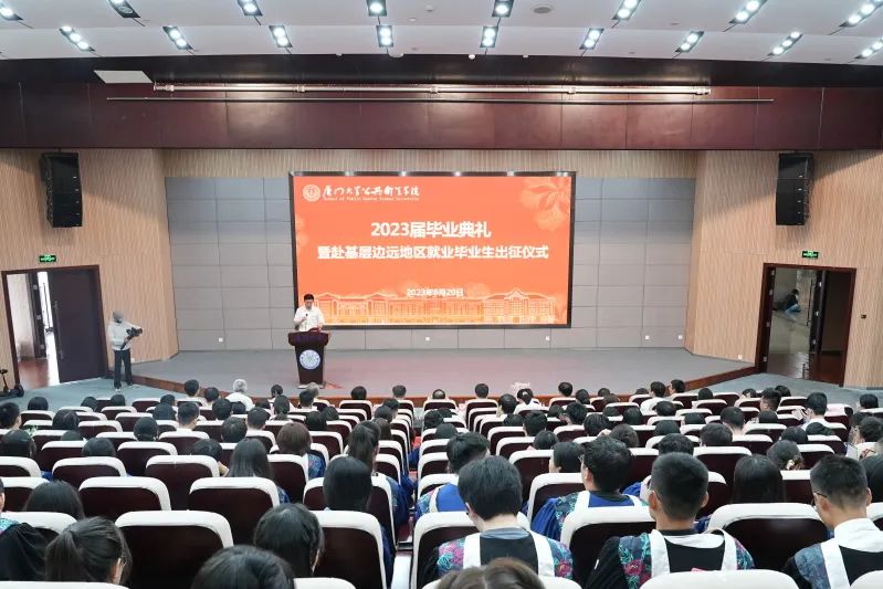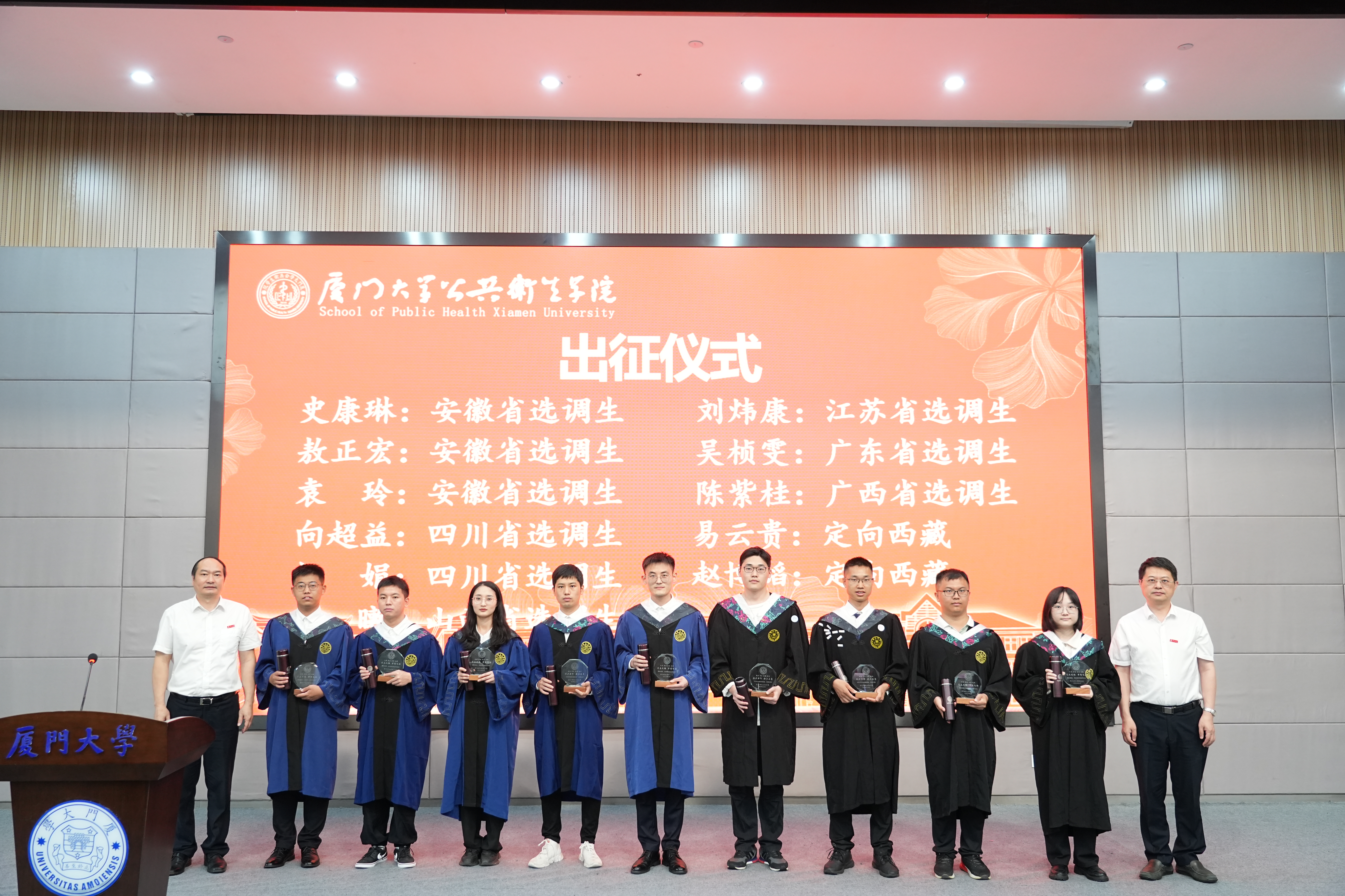 在今年的毕业生中,有11位同学奔赴基层、边远地区就业,到祖国最需要的地方去发光发热。张琥代表学院向同学们授旗,激励他们弘扬公卫精神,赓续学院优良传统,到党和人民最需要的远方去贡献青春力量。