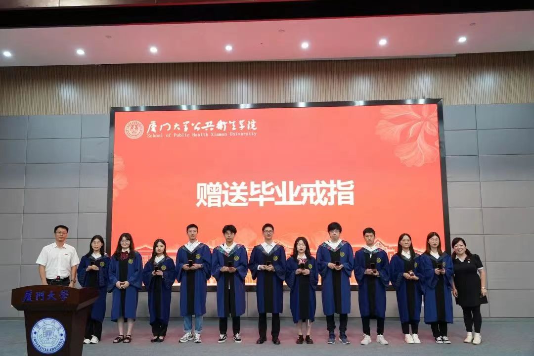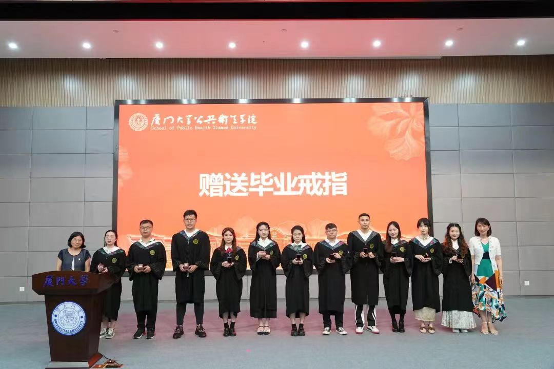 按照公共卫生学院的传统,学院为每一位毕业生准备了一枚精致的毕业戒指。老师们为毕业生们一一佩戴毕业戒指。
