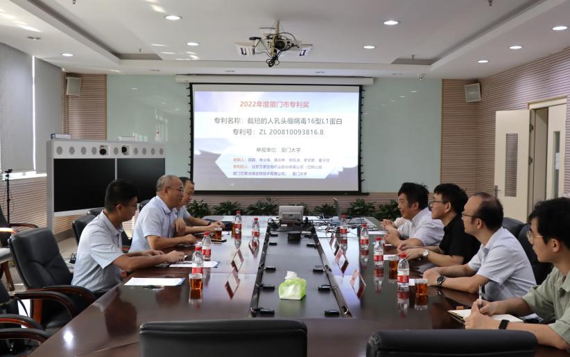 吴煌开处长首先祝贺中心团队获得第九届厦门市专利奖特等奖。他指出,中心团队在生物医药领域成果丰硕、令人鼓舞,围绕国产HPV疫苗技术形成完善的自有专利池,有力支撑了厦门市知识产权事业及生物医药行业良性发展。希望市局与中心团队加强交流合作,进一步推动我国科技自立自强。