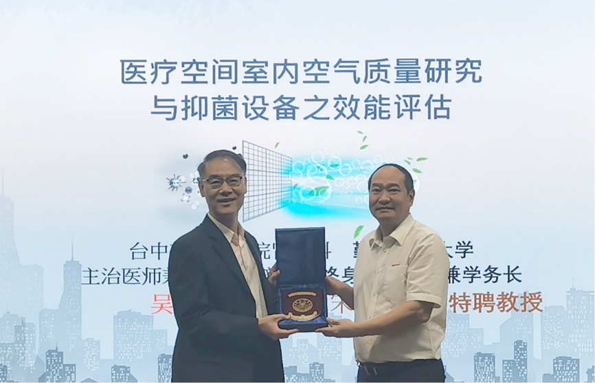 随后,宋文沛教授进行题为《医疗空间室内空气质量研究与抑菌设备效能评估》的讲座。他结合自身经历,阐述了空气污染与人类行为的关系、空气污染影响以及针对解决空气污染所需的具体措施,分享了疫情期间台中市采取的“预防-因应-恢复”、“轻重症分流收治”等防疫举措,以及两岸就医门诊开门设计等内容。