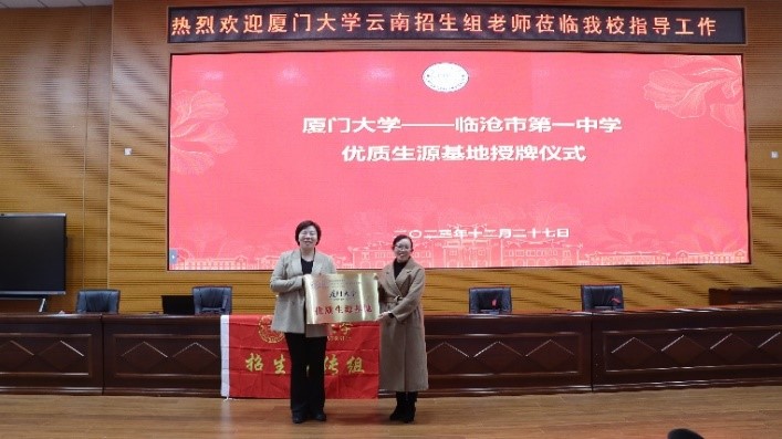 12月27日-29日,厦门大学云南招生宣传组、公共卫生学院雷照、戴秀芬一行,先后赴云南省临沧市第一中学、腾冲市第一中学、下关一中等多所云南省重点生源中学开展招生宣讲、座谈和优质生源基地授牌,并于12月30日赴云南省保山第一中学参加校庆活动。