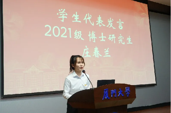 获奖教师代表郭志德助理教授、学生代表2021级博士生庄春兰先后上台发言。