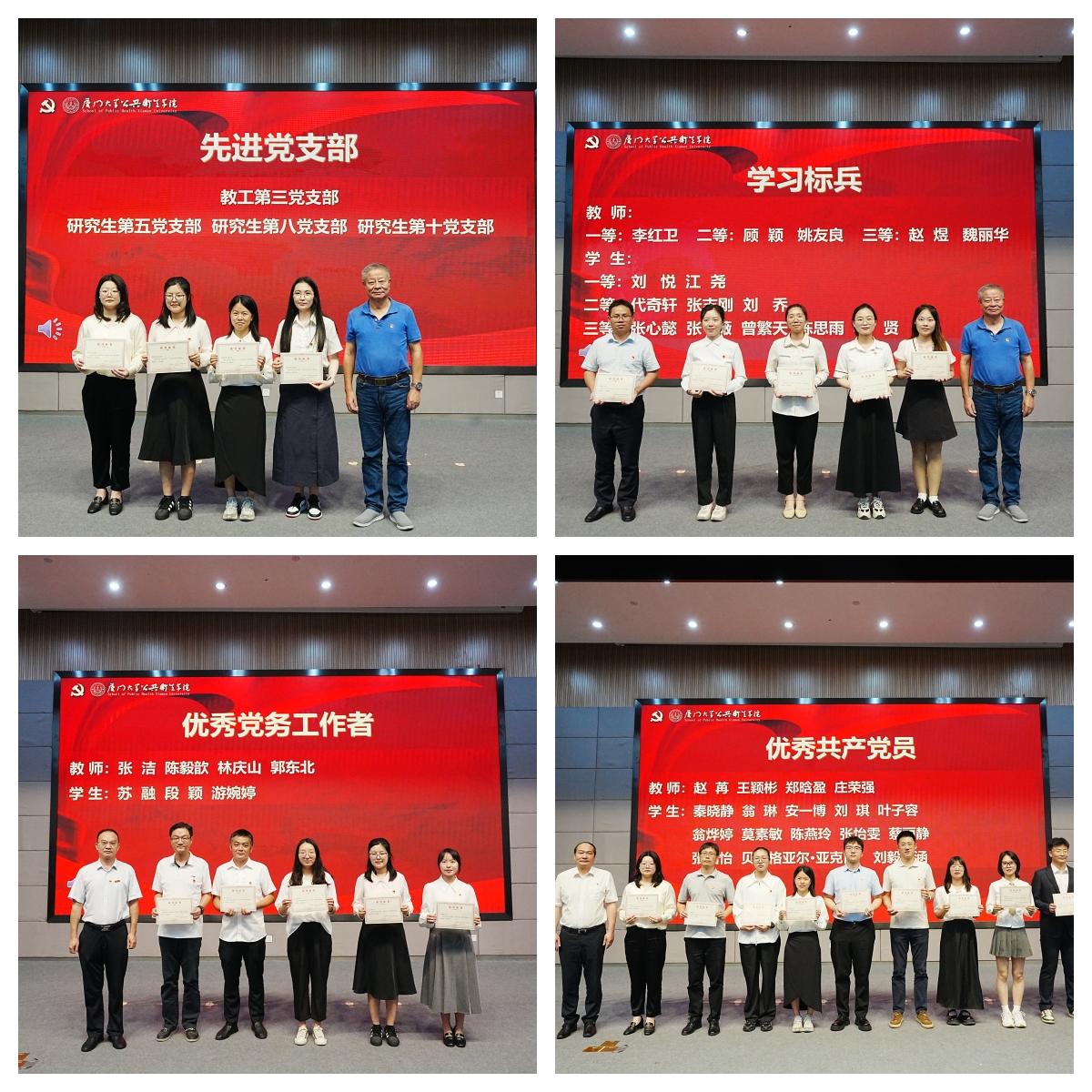 在“两优一先”的表彰仪式中,学院对过去一年表现积极,贡献突出的集体和个人进行表彰。由黄田、张琥、刘君彬分别为院级“优秀共产党员”、“优秀党务工作者”和“先进党支部”、“学习标兵”颁奖。