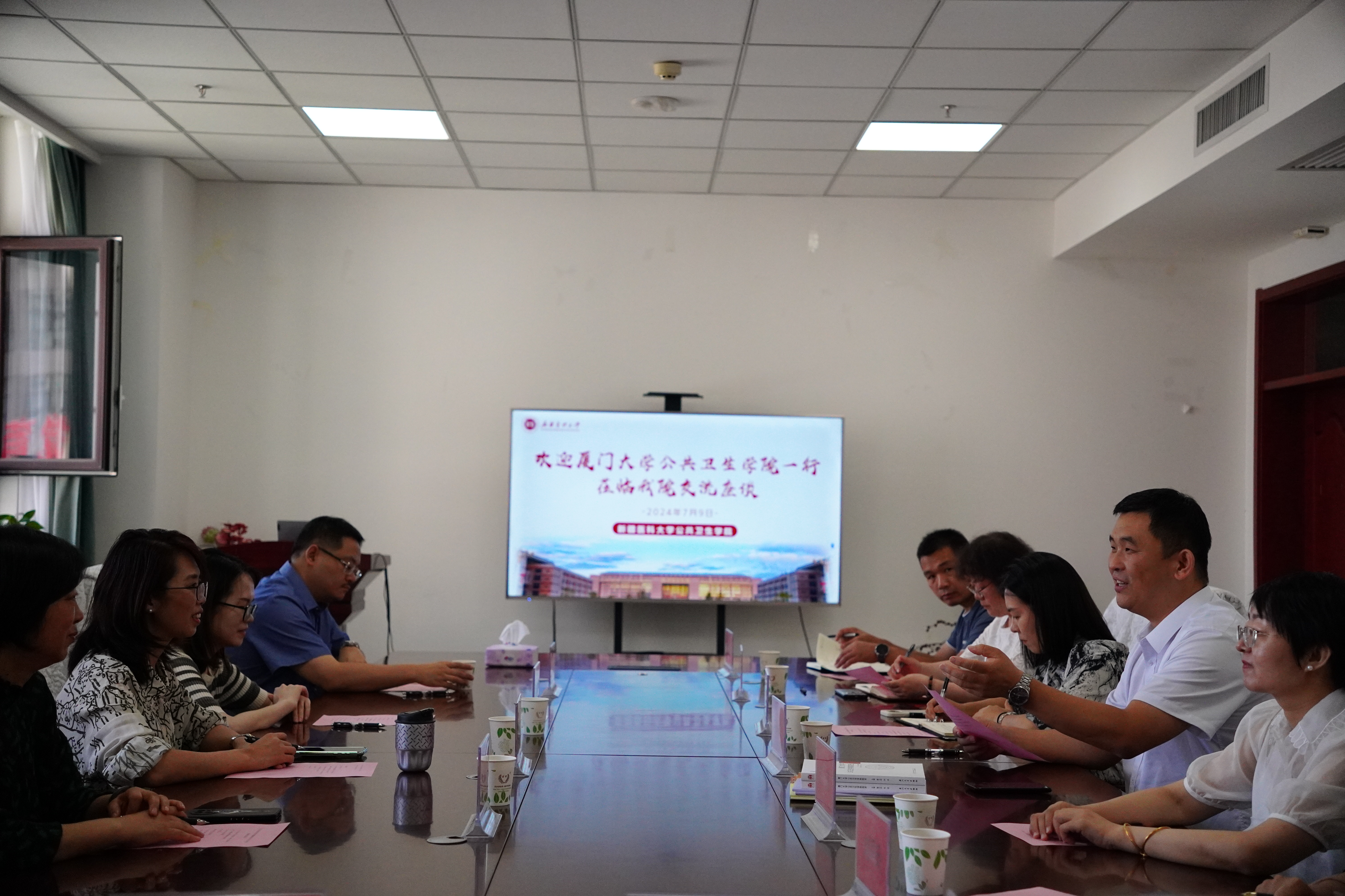 7月9日,厦门大学公共卫生学院党委副书记庄曦、实验医学系副主任郑子峥带领我院研究生一行12人赴新疆医科大学公共卫生学院进行交流。新疆医科大学公共卫生学院副院长王凯、李卉,教研室主任及代表教师参加座谈。