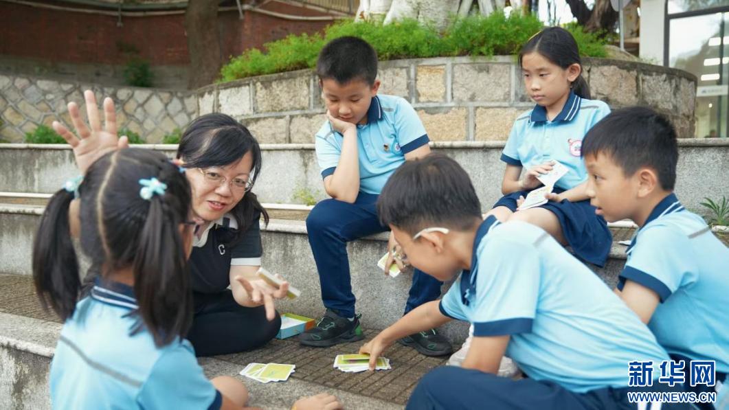 图为江宜珍在厦门市人民小学(鼓浪屿校区)带学生体验桌游课程。新华网发(厦门大学公共卫生学院供图)