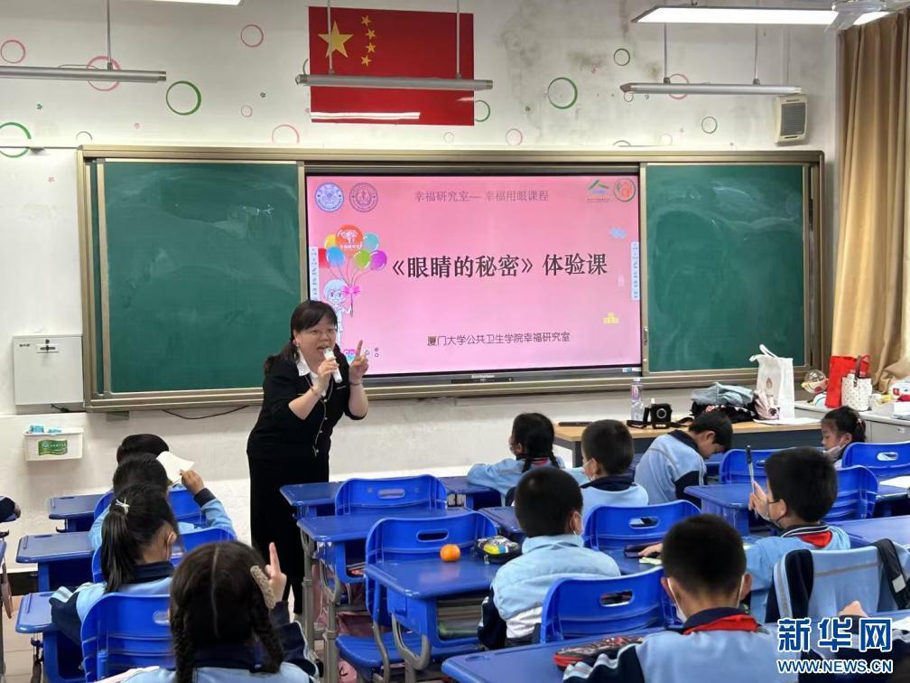图为江宜珍在进行“眼睛的秘密”课程教学。新华网发(厦门大学公共卫生学院供图)