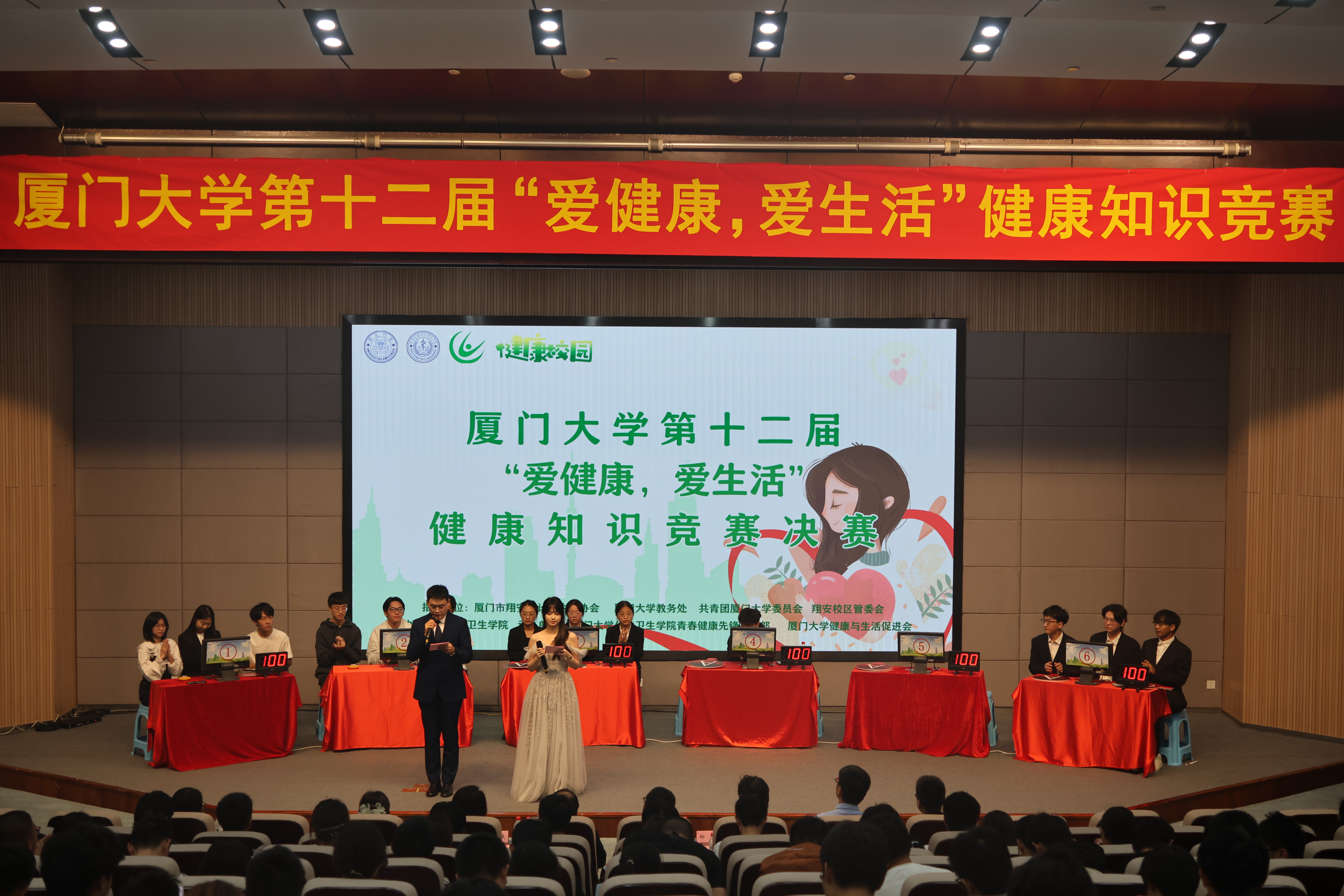 为推进学校健康教育工作,提高健康知识知晓水平,增强同学们的健康意识,推动健康生活校园环境的创建。11月23日下午,由厦门市翔安区计划生育协会、厦门大学教务处、共青团厦门大学委员会、翔安校区管委会指导,公共卫生学院主办的厦门大学第十二届“爱健康,爱生活”健康知识竞赛决赛在翔安校区德旺图书馆二号报告厅举行。
