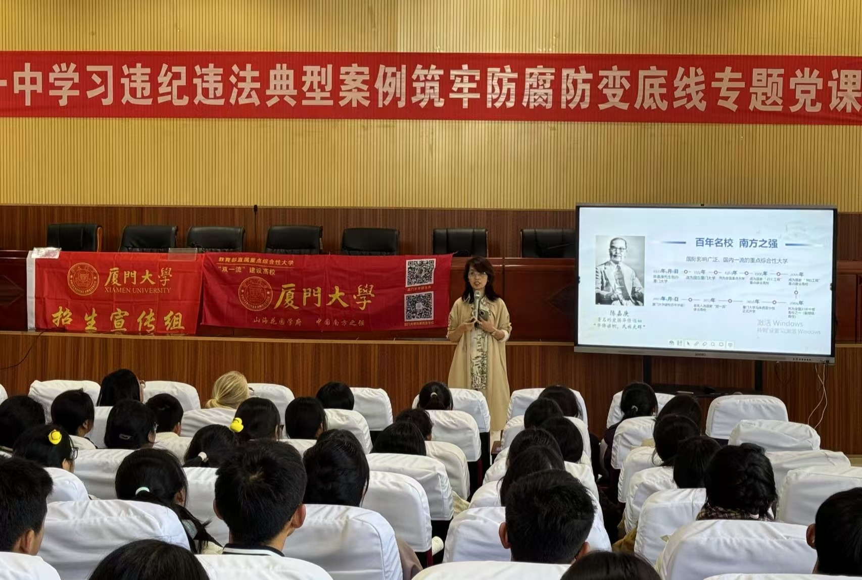 11月27日至28日,厦门大学云南招生宣传组赴腾冲市第一中学开展招生宣讲及生涯规划讲座活动。公共卫生学院党委副书记庄曦以“恰同学少年,风华正茂”为主题,为腾冲市第一中学200余名高一学生做《大学专业选择与生涯规划》讲座,她从为什么上大学、选择什么大学、选择什么专业、怎么选专业、成为什么样的人等篇章循序渐进,将生涯规划与厦门大学四种精神、文化传承、悠久历史、办学成就、人才培养理念、教育教学成果等充分融合,引导学生主动思考“学什么、怎样学、为谁学”,在高一选科时确立未来学涯的努力目标。