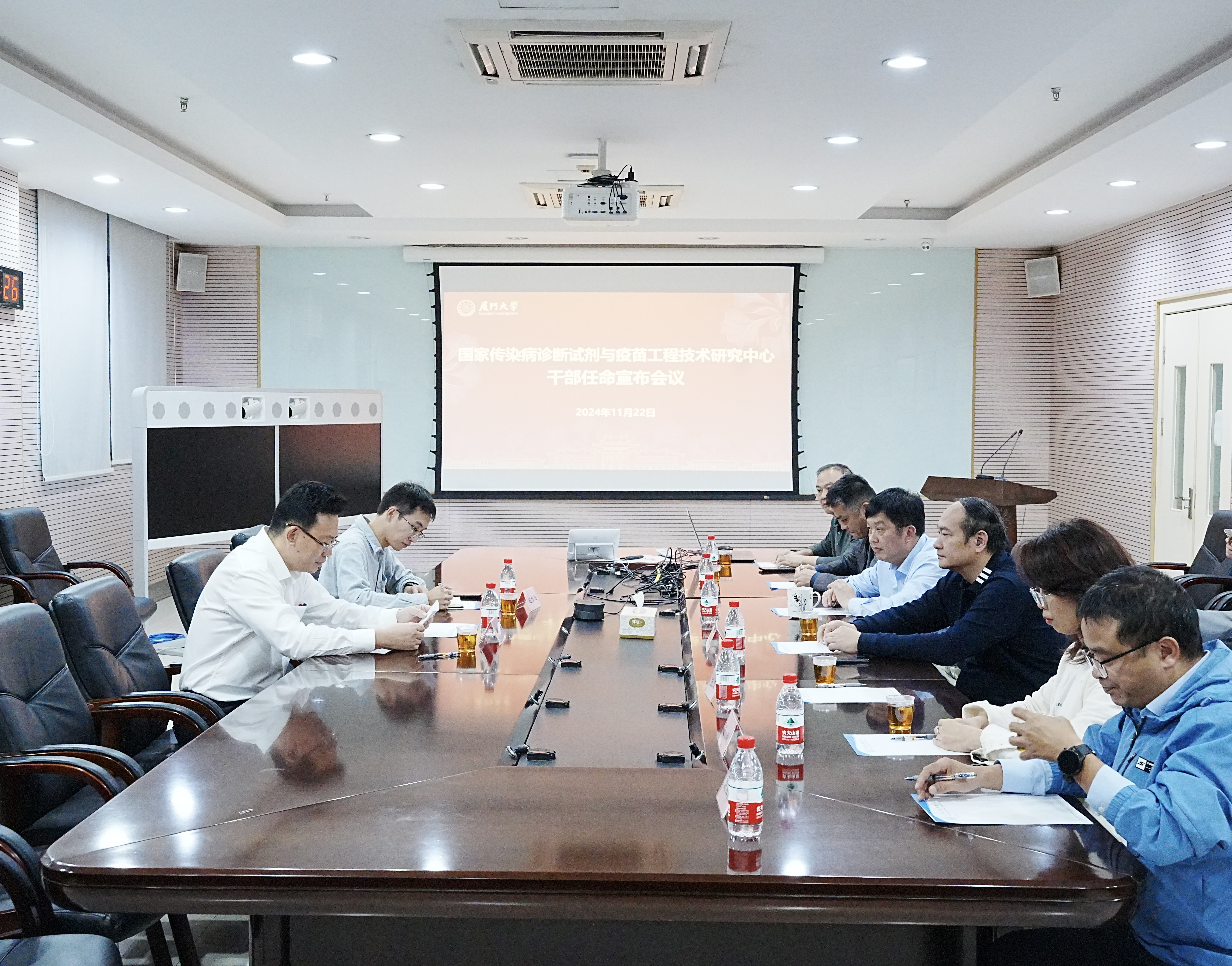 会上,孙理代表校党委宣布干部任免决定。经校党委研究决定,林庆山同志任国家传染病诊断试剂与疫苗工程技术研究中心(厦门大学)副主任。他简要介绍了林庆山同志的基本情况和工作经历,并对林庆山同志今后的工作提出了几点希望和要求。