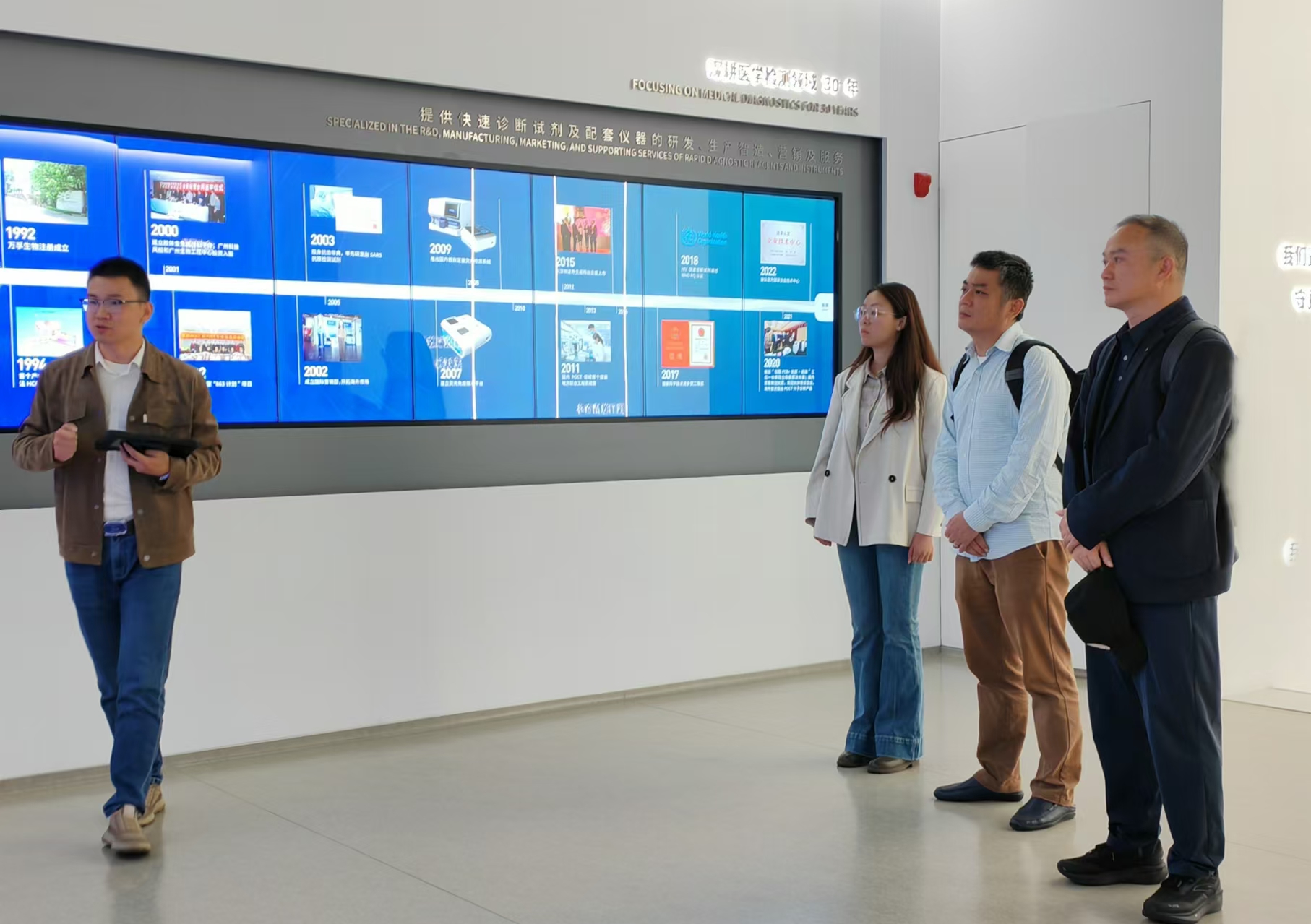 12月12日,调研组一行来到广州万孚生物技术股份有限公司开展了调研,万孚生物科技创新部陈建辉、人力资源中心招聘经理谢晓冬热情接待,陈建辉带领调研组参观万孚神舟路园区展厅,并介绍了企业的发展历程、6大研发中心和技术平台等方面,使其了解企业的生产流程、技术创新和市场前景。