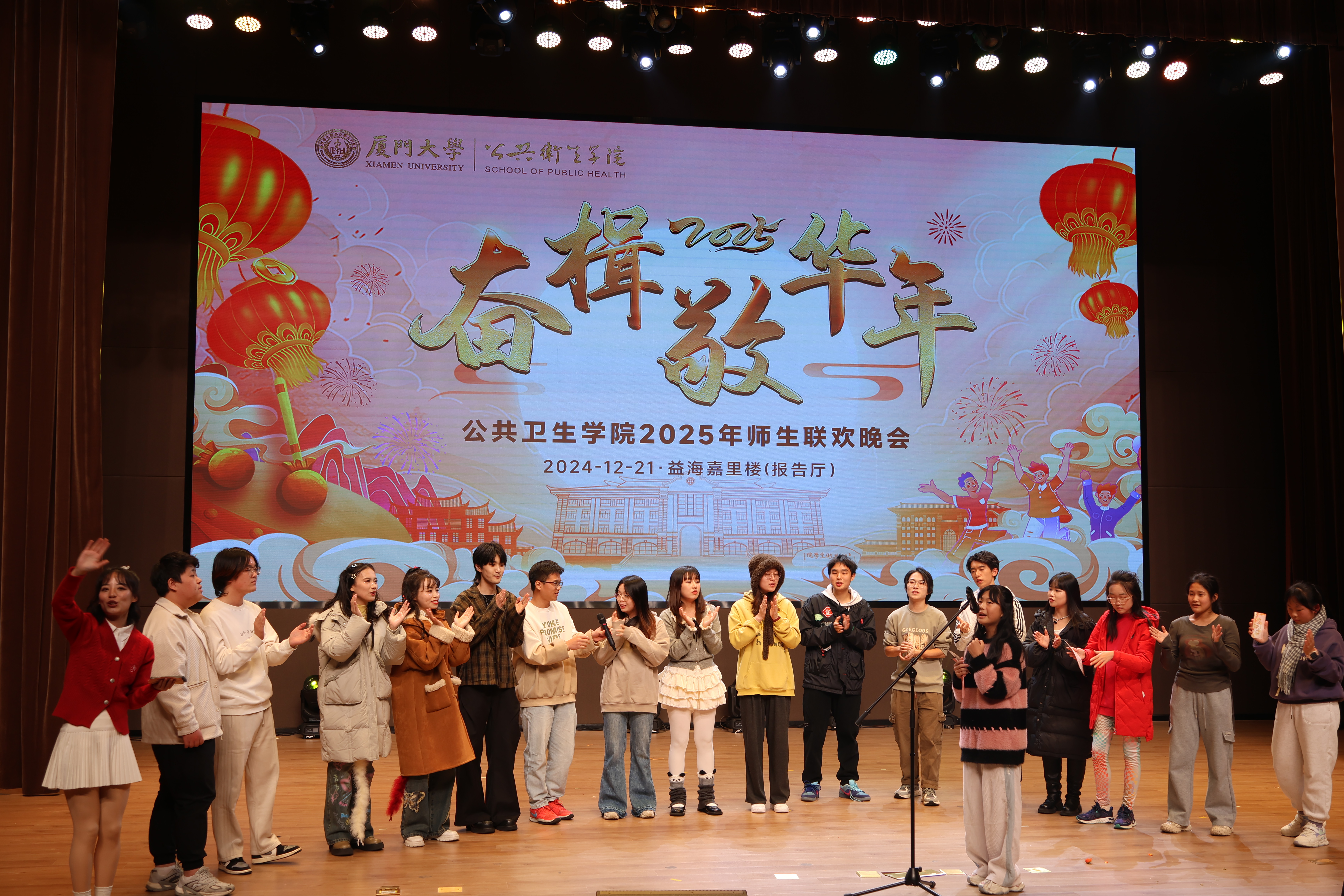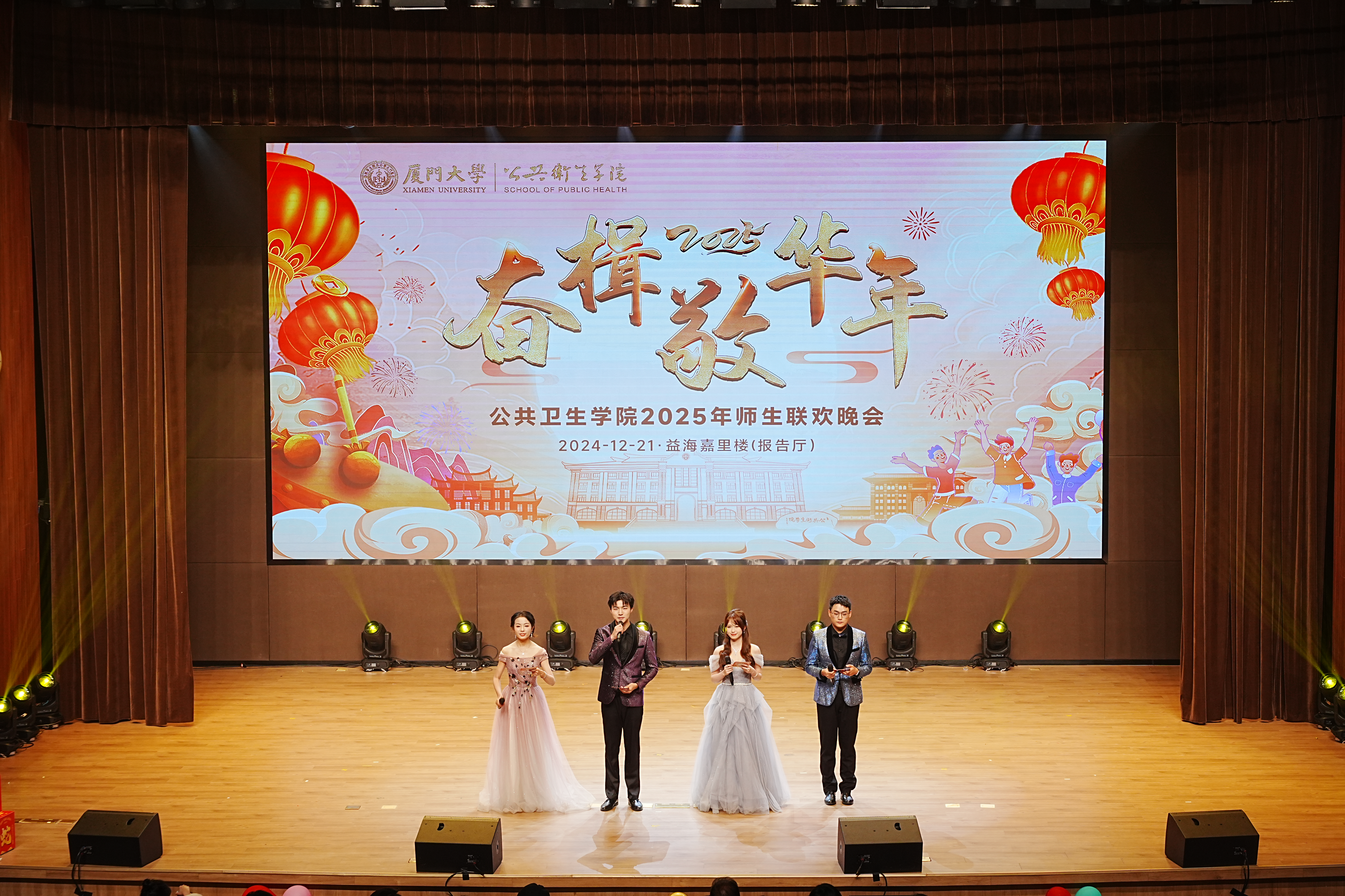 12月21日,公共卫生学院在益海嘉里楼报告厅举办了2025年新年联欢晚会。学院师生欢聚一堂,共同揖别旧岁,喜迎新年。厦门大学原校长助理、公共卫生学院原党委书记滕伯刚,翔安校区管委会副主任刘俊杰,翔安校区办公室主任马利娜,翔安校区团工委书记郑音,公共卫生学院党委书记张琥,院长张军,党委副书记庄曦、刘君彬出席晚会。
