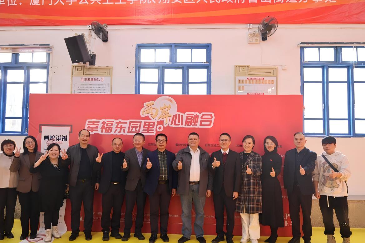 近日,我院联合翔安区人民政府香山街道办事处,在香山街道东园社区成功举办了幸福东园里、两岸心融合——“厦门大学(校级)大学生社会实践基地”启动仪式。厦门大学翔安校区管委会副主任刘俊杰,厦门大学团委副书记兼翔安校区团工委书记郑音,我院党委书记张琥、党委副书记庄曦、刘君彬,厦门市台联副会长张哲菁,翔安南部片区开发建设指挥部产业招商部部长蔡东亮,厦门市台湾事务办公室处长苏艺雄,翔安区台办主任林少明,翔安区民政局局长黄逸平,香山街道党工委书记马志坚、办事处主任张奕泉等领导嘉宾出席。