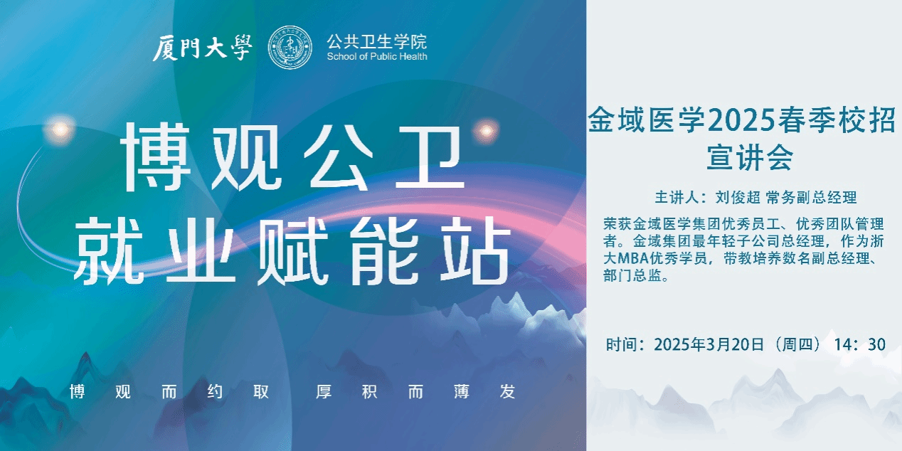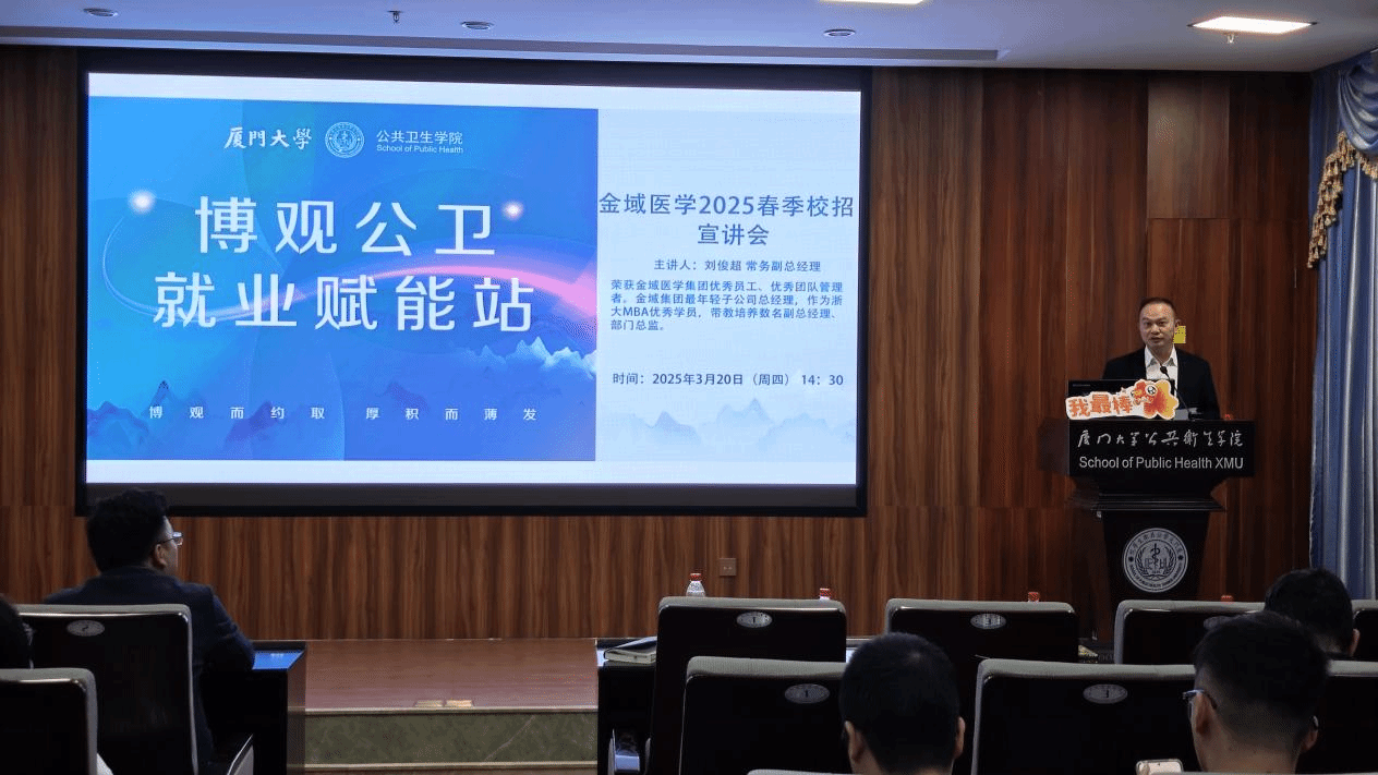 3月20日,我院于曾宪梓楼101举办金域医学2025届春季校园招聘宣讲会。活动由我院党委副书记刘君彬主持,福州金域常务副总经理刘俊超、厦门金域执行总经理艾健及金域医学人力资源组经理林莎担任宣讲嘉宾,2025届毕业生参与。