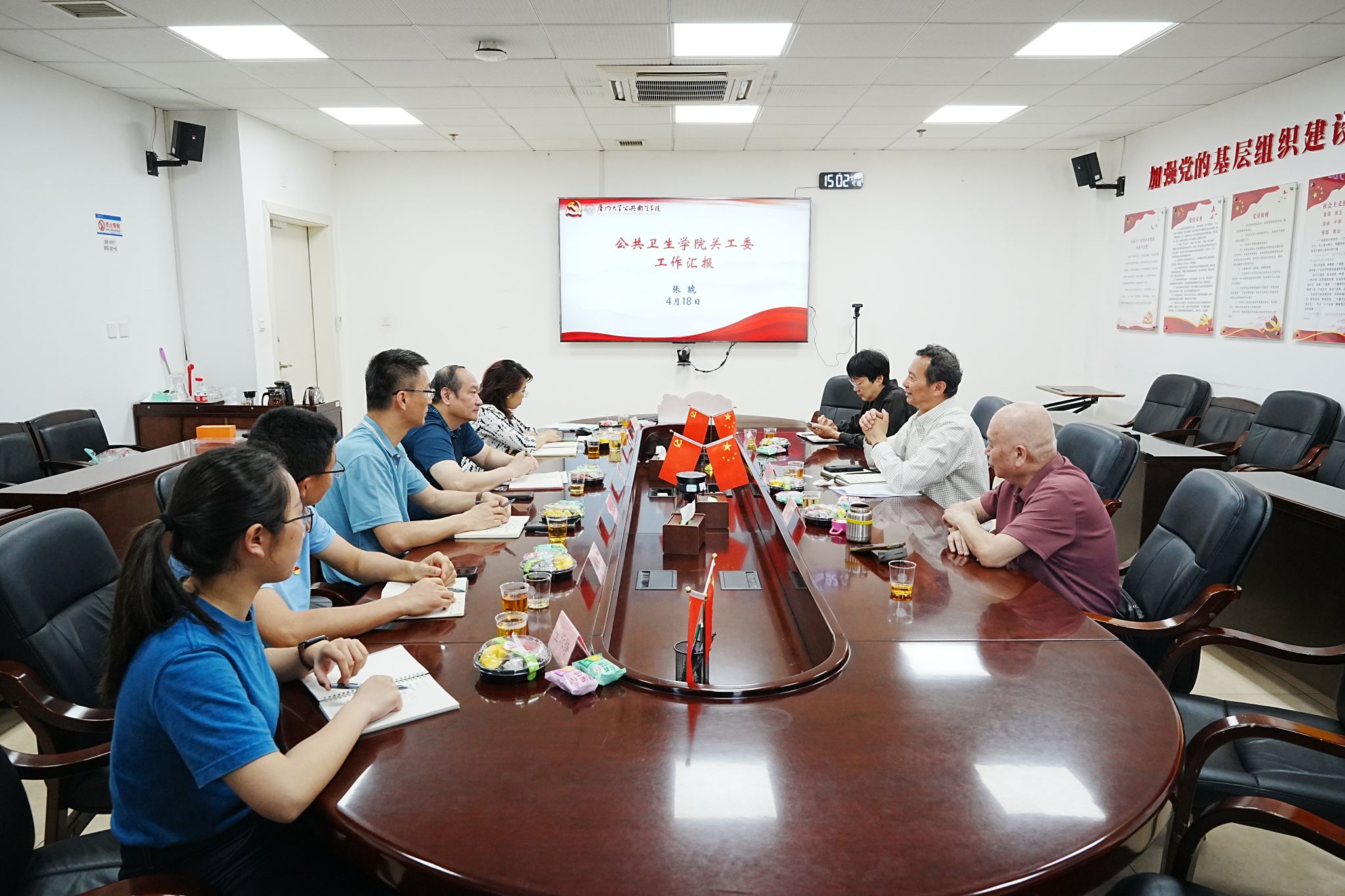 张琥从四个方面汇报了学院关工委工作:一是围绕“五好”关工委建设目标,完善组织架构,发挥“五老”育人作用,优化工作机制,创新工作方法,强化品牌建设,提升活动实效;二是深入学习全国教育大会精神,通过理论学习、专题培训等方式,引导师生将学习成果融入高水平公共卫生学院建设。三是积极搭建交流平台,优化资源配置,为关工委工作提供坚实保障;四是充分发挥“五老”优势,将红色基因传承融入学科建设,多措并举助力学生成长成才,积极拓宽就业渠道。