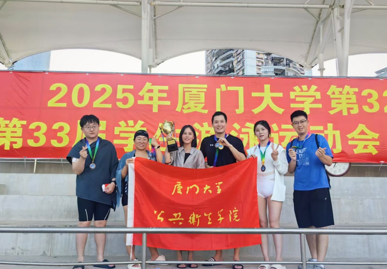 6月22日,厦门大学第32届教职工游泳运动会在思明校区举行。学院工会积极组织动员,全力做好赛事服务保障。院教职工游泳队团结协作、奋勇拼搏,最终荣获团体总分第五名,并在多个项目中取得优异成绩,充分展现出积极向上的精神风貌和良好的体育素养。