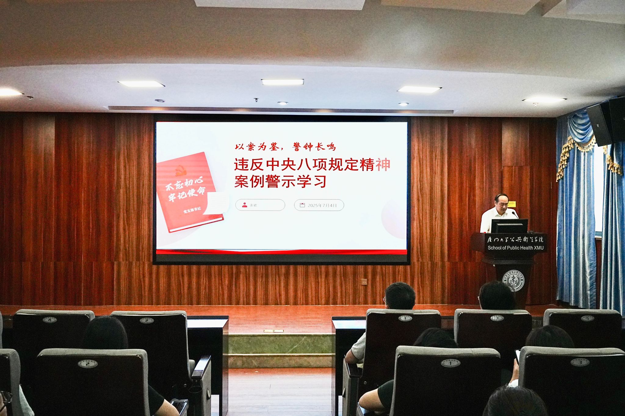 为深入贯彻中央八项规定精神,进一步加强作风建设,增强师生党员廉洁自律意识,7月4日,学院在曾宪梓楼101报告厅开展警示教育主题党课,院党委书记张琥以“以案为鉴,警钟长鸣”为题,为全体师生党员授课。