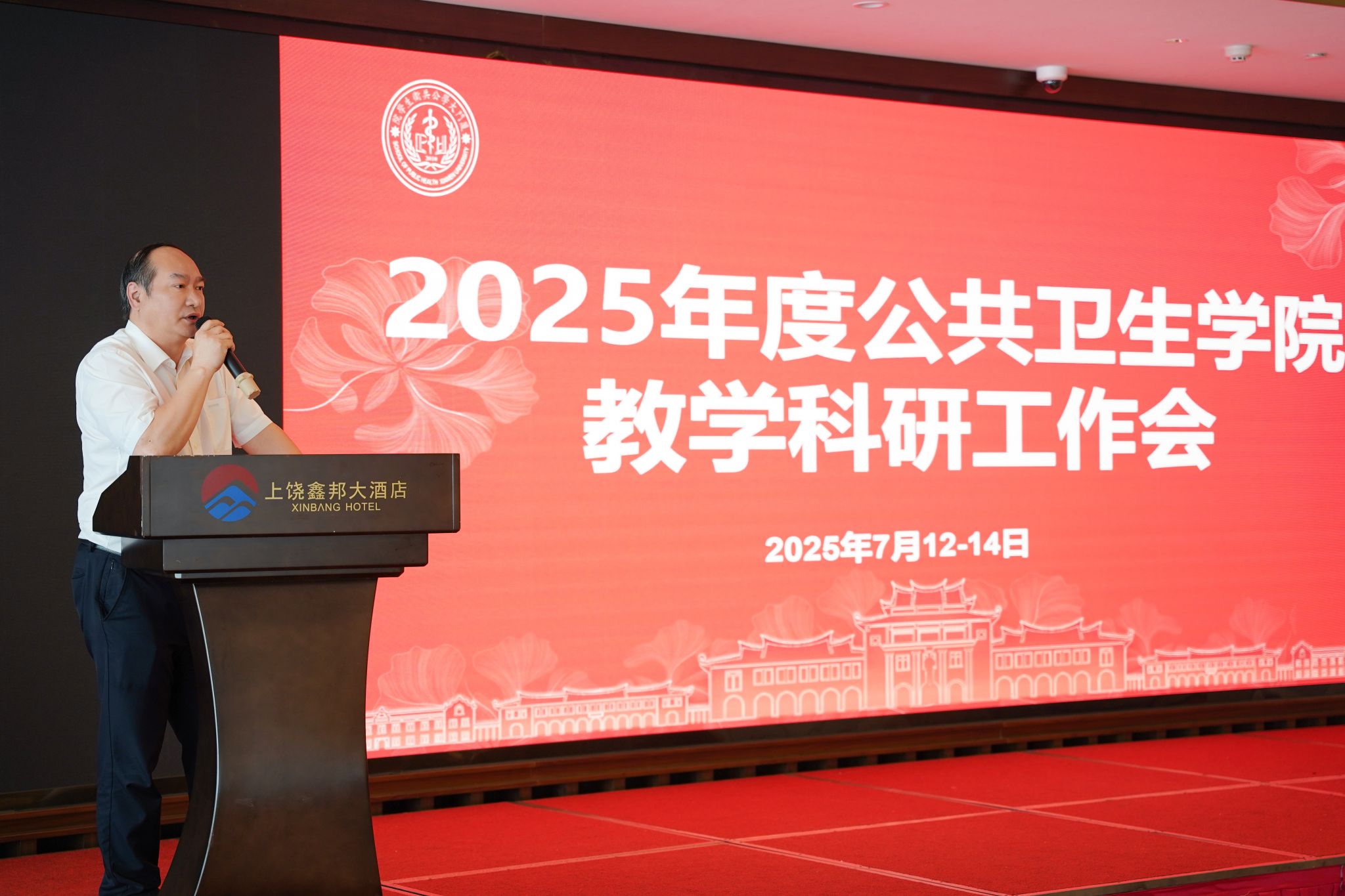 为深入贯彻落实新时代公共卫生与健康中国战略要求,科学谋划“十五五”时期发展蓝图,我院于7月12日至13日在江西省上饶市举办2025年度教学科研工作会议。会议由我院党委副书记刘君彬主持。