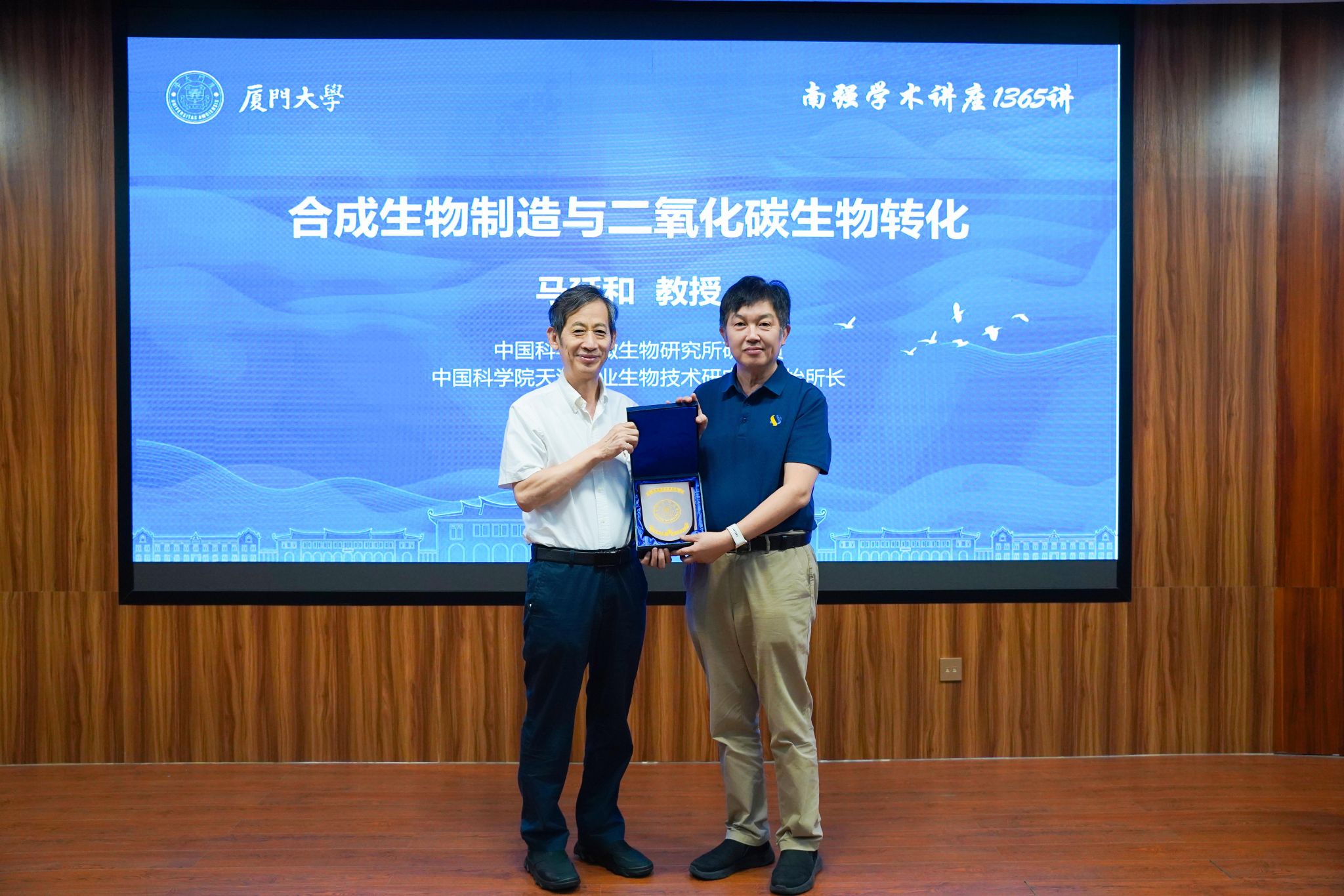 9月12日上午,中国科学院天津工业生物技术研究所创始所长、微生物研究所研究员马延和应邀来访我校,作为主讲嘉宾出席南强学术讲座。讲座伊始,我校夏宁邵院士向马延和颁发了南强学术讲座纪念牌。本次讲座由公共卫生学院院长张军教授主持,百余名师生到场聆听。