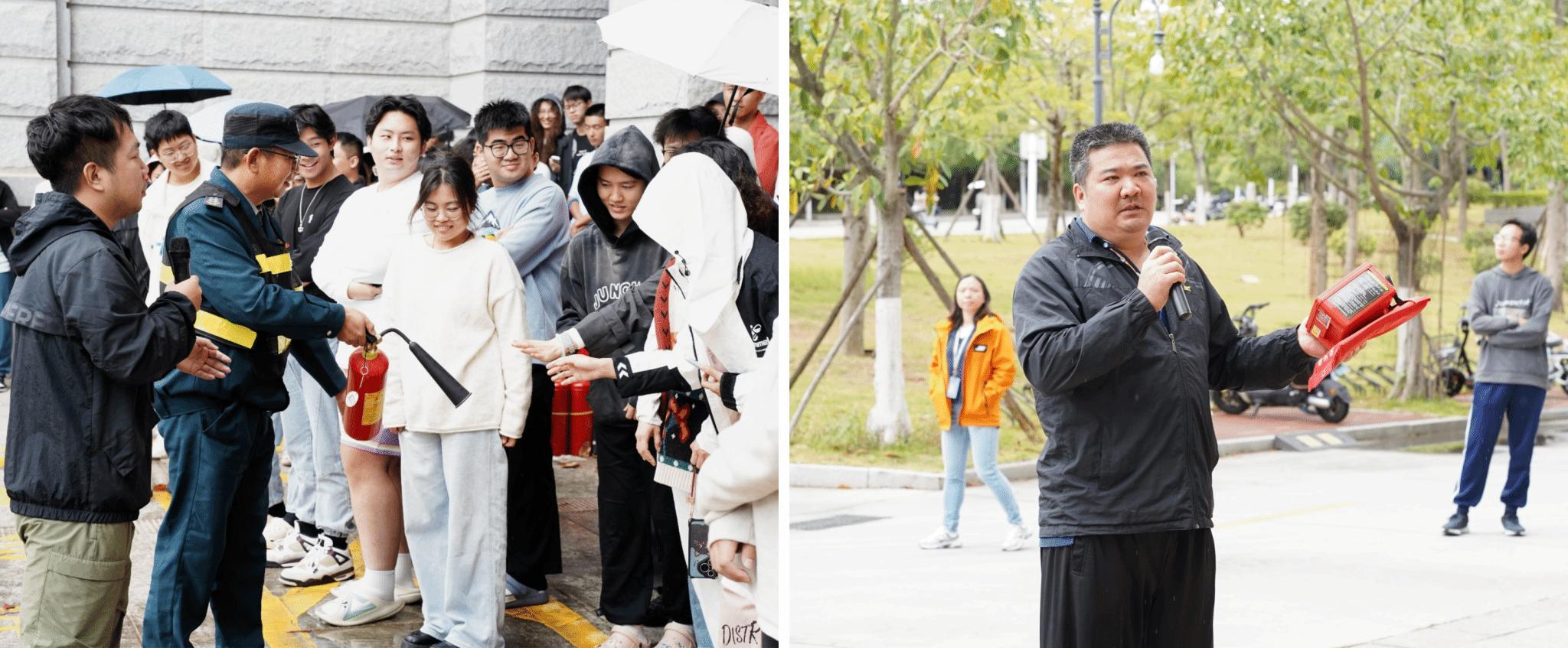 为提升师生消防安全素养与应急处置能力,11月12日,学院联合学校保卫处组织开展了2025年秋季学期消防演练。学院科研平台副主任林庆山主持演练。