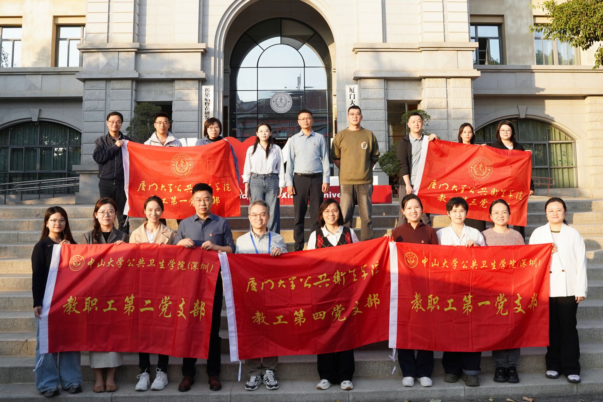 12月8日,我院教工第一、第三党支部与中山大学公共卫生学院(深圳)教工第一、第二党支部开展联学共建暨业务交流活动。中山大学公共卫生学院(深圳)实验教学中心常务副主任冯翔、党政办公室主任肖永清一行,学院副院长林忠宁、科研平台副主任林庆山、实验教学中心副主任张洁等参加交流。