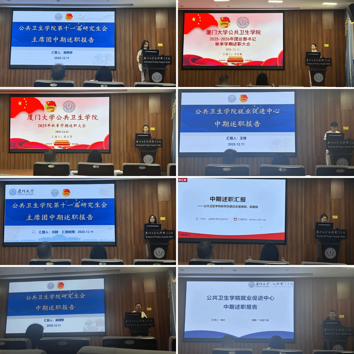 为深入贯彻落实《关于巩固高校学生会(研究生会)改革成果的若干措施》与《加强和改进新时代学联学生会工作实施方案》精神,扎实推进学生组织改革与创新,12月11日,公共卫生学院研究生学生机构2025-2026学年中期述职会在曾宪梓楼101报告厅顺利举行。院党委副书记刘君彬出席会议,团委书记刘浥泓、辅导员陈煜铮及秘书张雯媛参加会议。