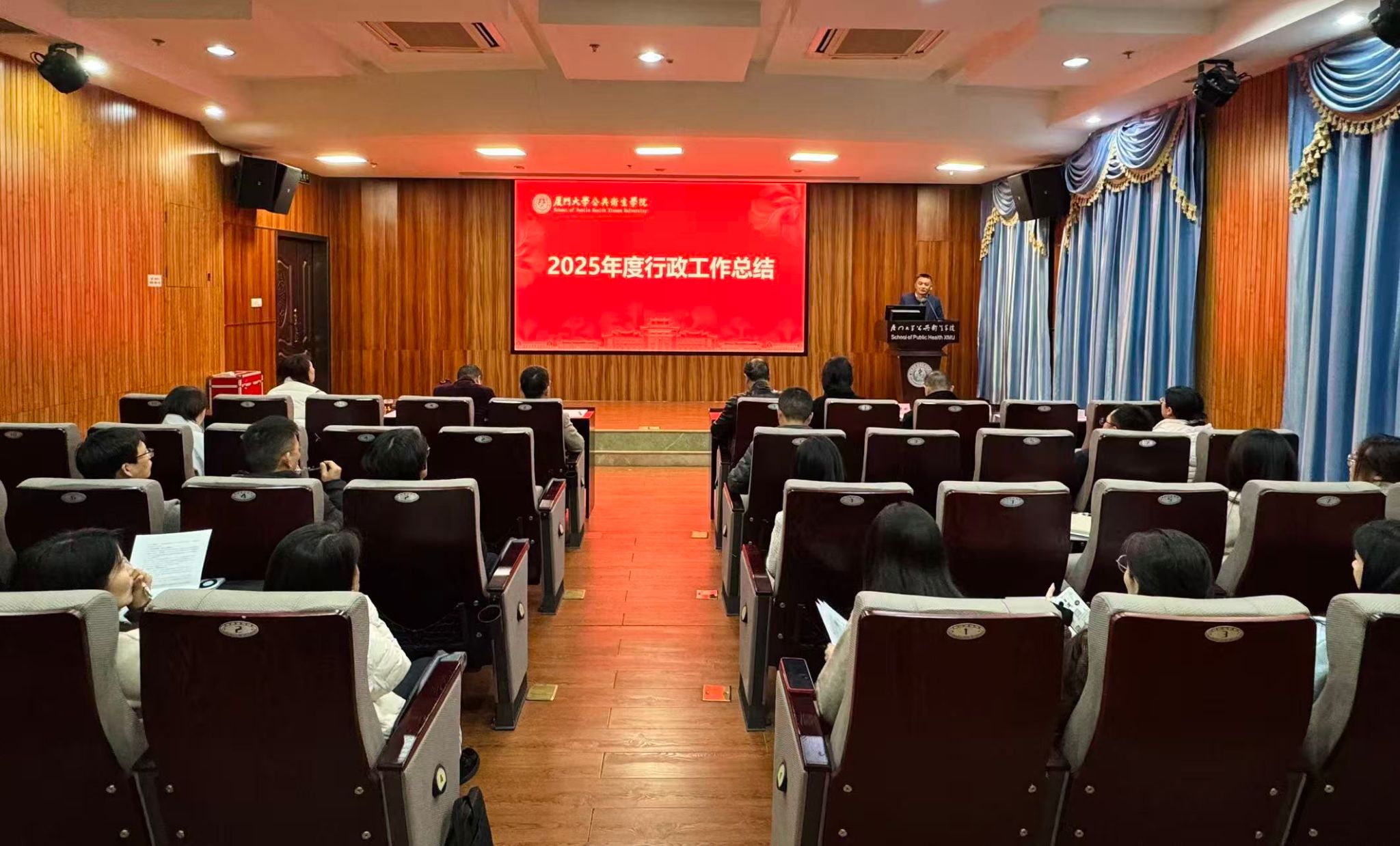 1月9日,公共卫生学院在曾宪梓楼101报告厅召开2025年度行政工作总结会。学院党政领导班子成员、全体行政人员及各系、中心负责人参加会议。