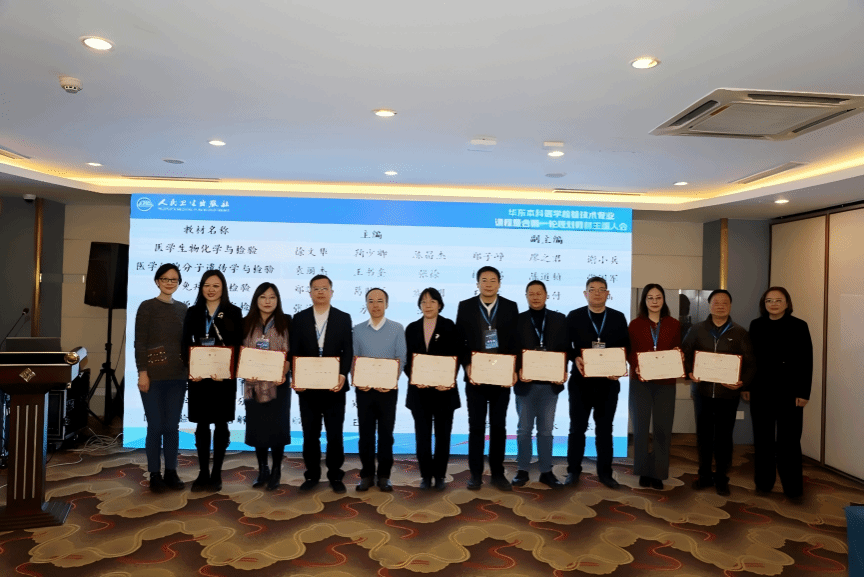 最后,教材评审委员会专家、全体主编、副主编、人民卫生出版社及人卫华东分社相关负责人及编辑合影留念。此次参会为学院进一步参与国家级教材建设积累了经验,学院将持续深化教学改革,为医学检验技术专业人才培养夯实基础。