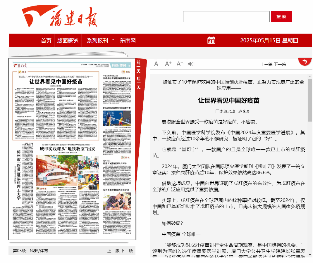 《福建日报》报道链接:https://fjrb.fjdaily.com/pc/con/202505/15/content_450657.html