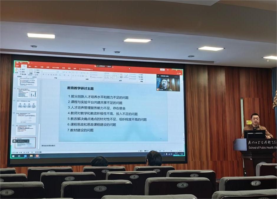 副院长林忠宁在总结发言时强调,要以新一轮本科教育教学审核评估为契机,提升教学质量、优化教学资源、深化课程思政、创新教学模式,补短板、强弱项、凝心聚力,做好新一轮本科教育教学审核评估工作,努力为培养公共卫生领域拔尖创新人才做出更大的贡献。