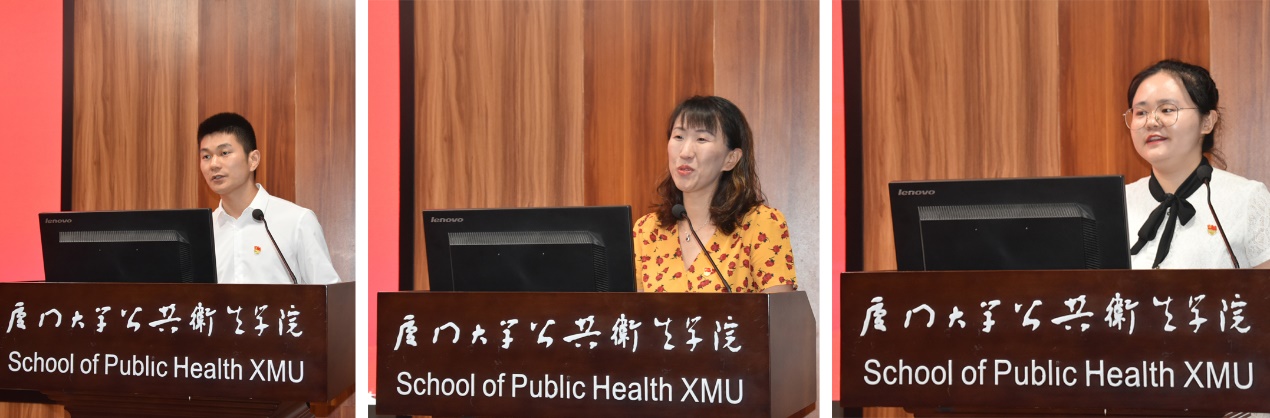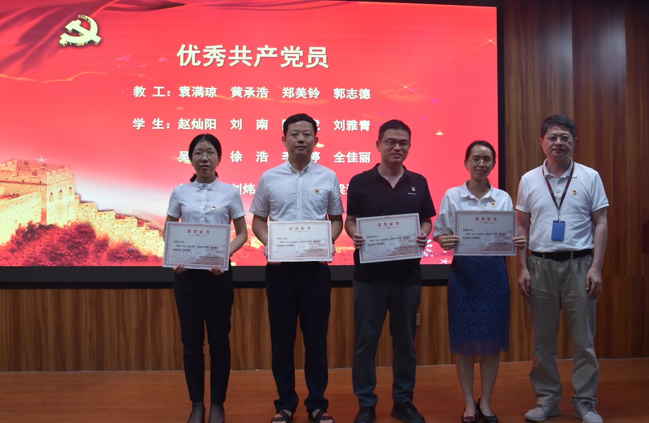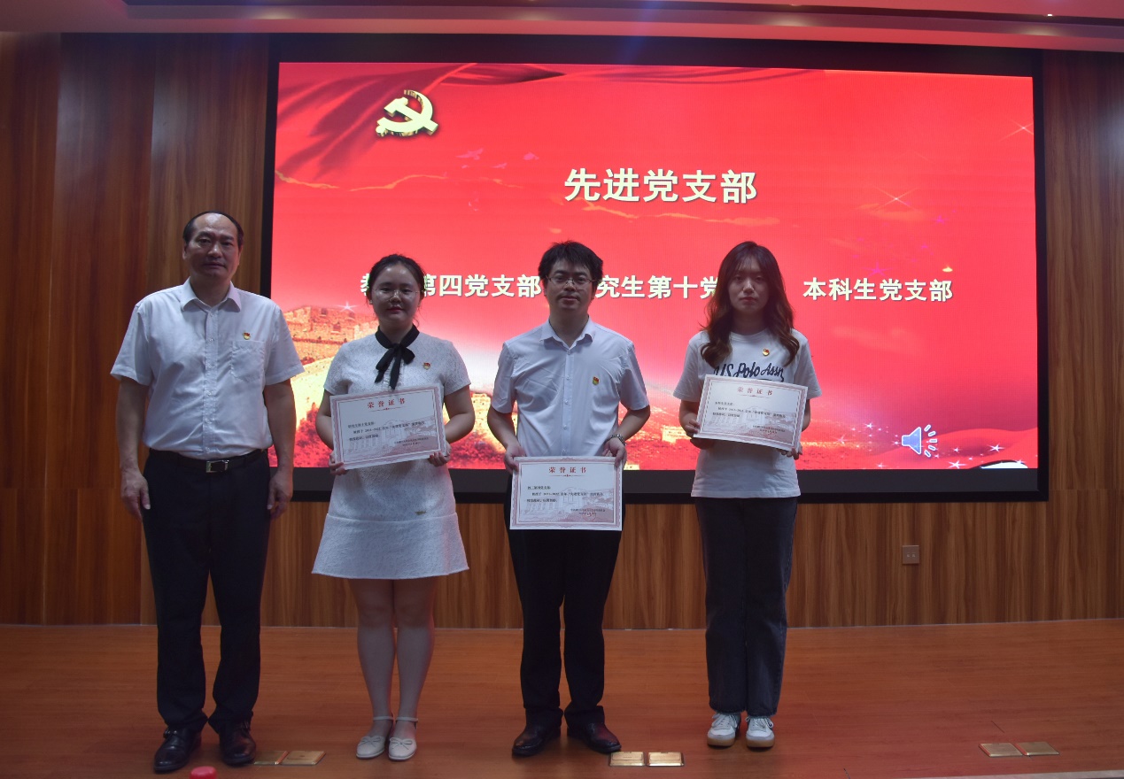 院党委委员依次为受表彰的先进集体和个人颁发奖状,优秀党员获奖代表吴亚飞同志、优秀党务工作者获奖代表赵苒同志、先进党支部获奖代表陈遇洁同志先后发言。