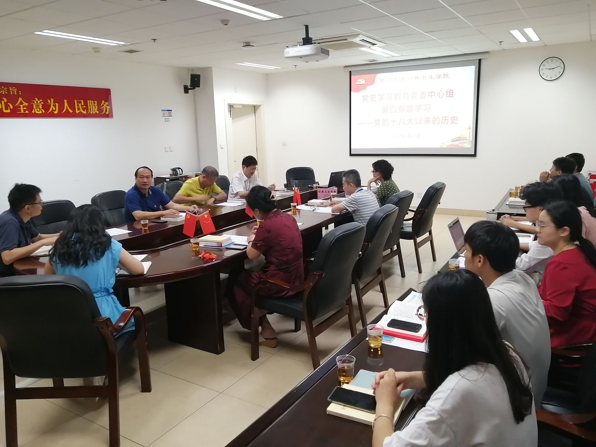 6月28日上午,公共卫生学院党委中心组在曾宪梓楼302会议室召开会议,专题学习党的十八大以来的历史。学校党史学习教育第六巡回指导组组长黄田,学院党委委员、党支部书记、辅导员参加学习会。学院党委书记张琥主持会议。