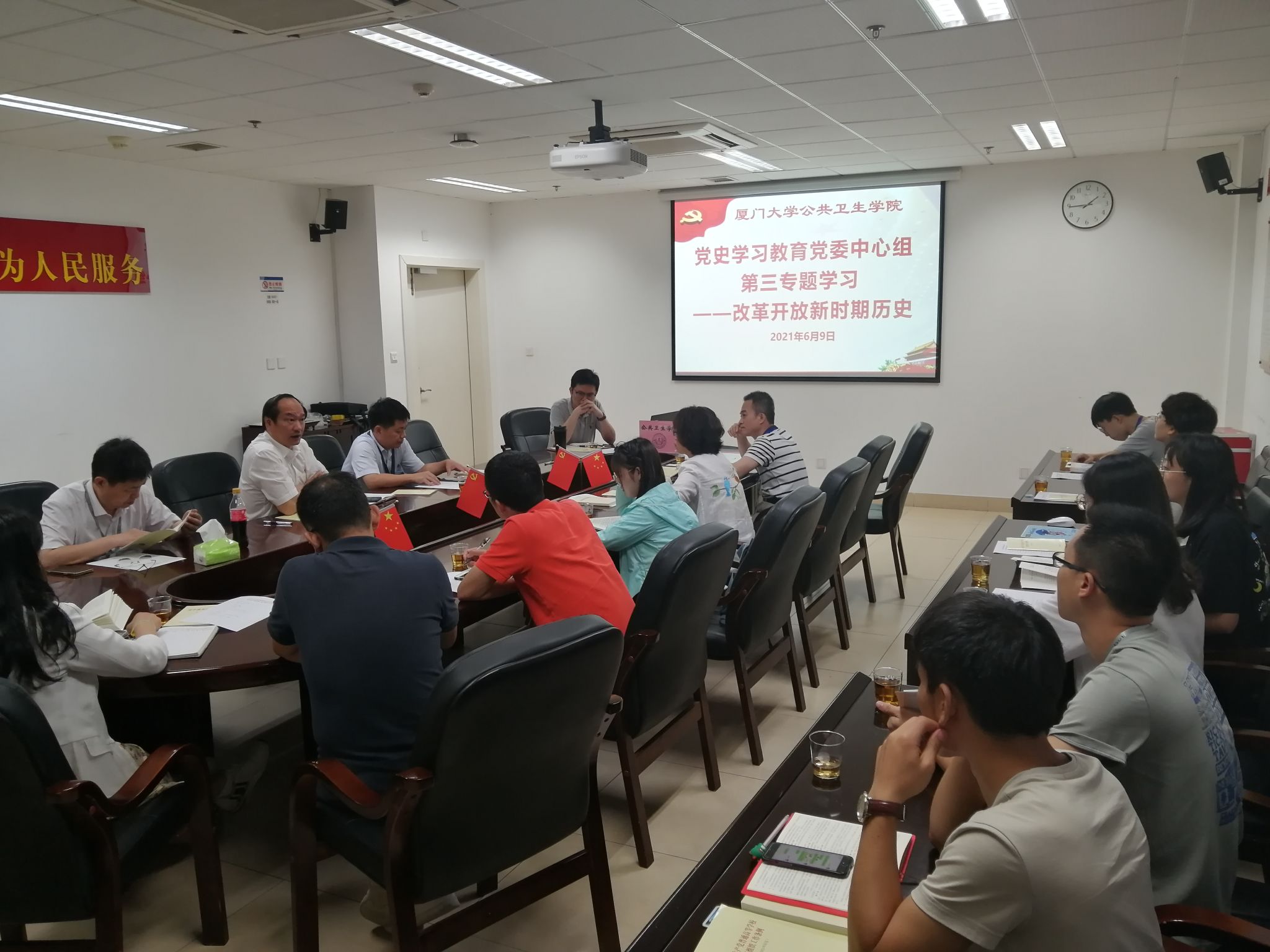 6月9日中午,公共卫生学院党委中心组在曾宪梓楼302会议室召开会议,专题学习改革开放新时期党的历史。学校党史学习教育第六巡回指导组副组长张清榕,学院党委委员、党支部书记、辅导员参加学习会。学院党委书记张琥主持会议。