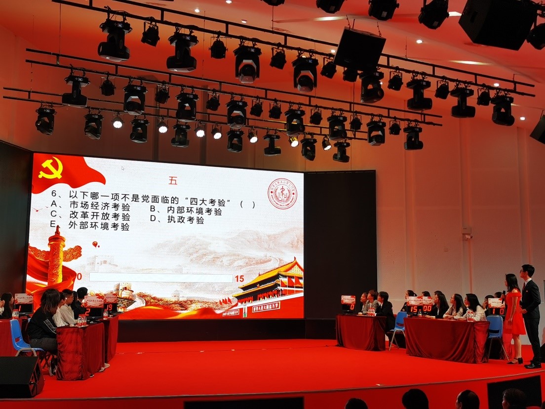 本次竞赛分为必答题、风险题和抢答题,题目内容涵盖了党的基本理论知识、习近平总书记关于“不忘初心、牢记使命”主题教育重要论述、十九大和十九届四中全会精神、“学习强国”等。在比赛中,各党支部参赛队员着装整洁、精神饱满、沉着稳健,以丰富的知识储备从容应答,赢得了在场师生的阵阵掌声,特别是在抢答环节,各支队伍都不甘示弱、积极抢答,展现了党员们斗志昂扬的精神风貌。为增强比赛的参与性,在现场观众互动答题环节,场下师生积极踊跃答题,现场气氛热烈。经过激烈的角逐,研究生第六党支部脱颖而出,斩获一等奖;研究生第一党支部、第五党支部获得二等奖;研究生第二党支部、第三党支部和第四党支部获得三等奖;研究生第七党支部和本科生党支部获得优秀奖。