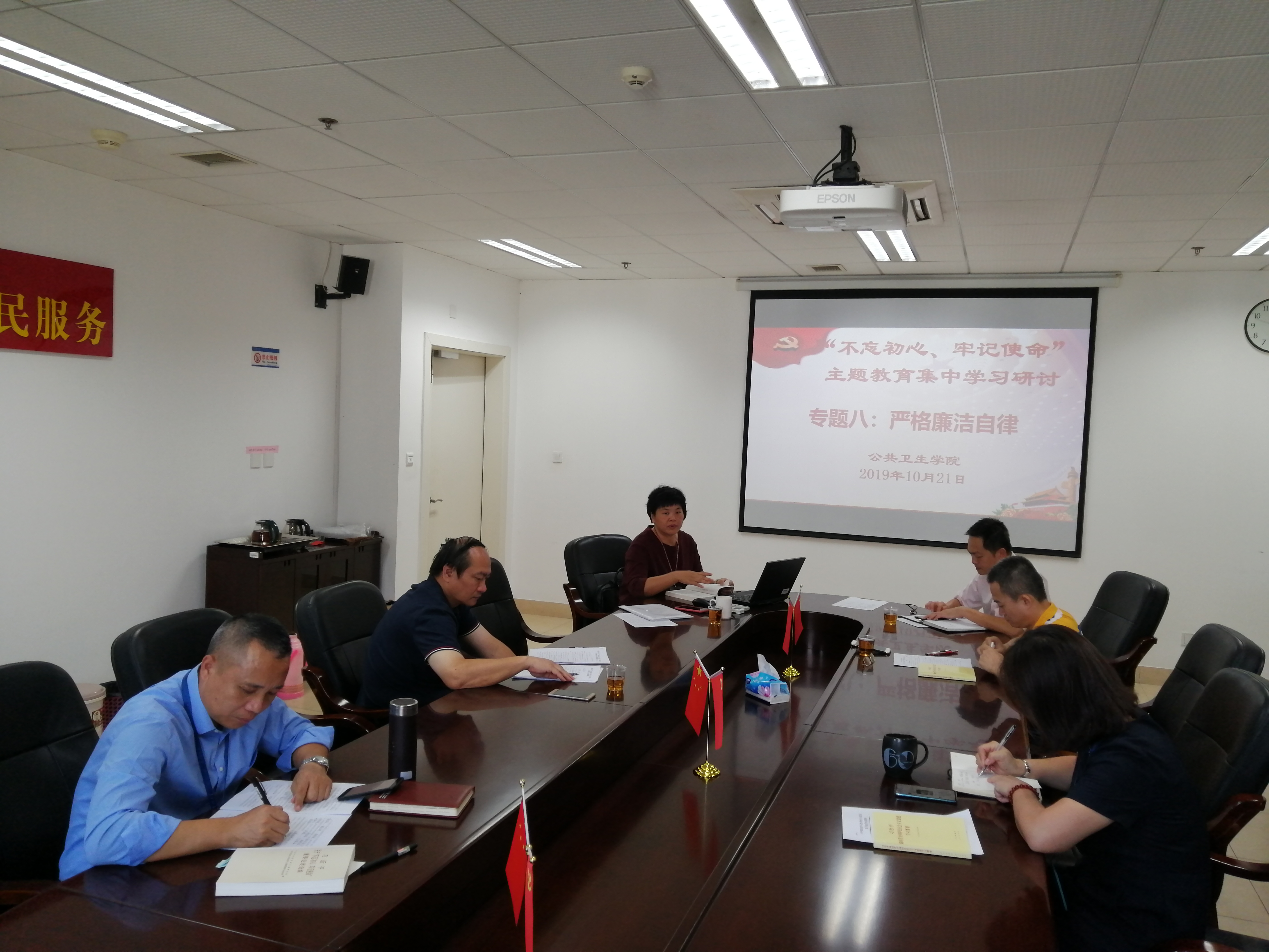 10月21日,公共卫生学院开展“不忘初心、牢记使命”主题教育集中学习研讨,主题是严格廉洁自律。参加人员有党员领导干部、党委委员。本次集中学习研讨由院党委委员、副书记黄兆君主讲领学。