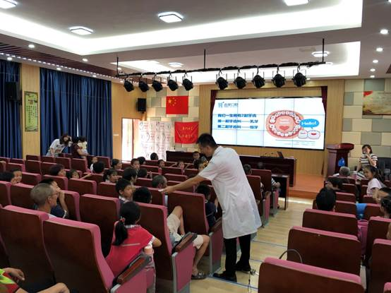 下午两点,老师们早早地来到彭厝学校开始紧锣密鼓的准备工作,三时许,40对祖孙手牵手步入会场就座。江宜珍副教授与齿度口腔的林成光医生为到场的小学生及其爷爷奶奶外公外婆们开启了一堂生动的口腔保健健康讲座,教工一支部的老师们也在现场协助讲座、解答疑问。现场的40对老人和孩子们听得津津有味,现场掌声热烈,互动频繁,笑声不断。通过讲座,不仅让老人和孩子们了解到口腔里“别有洞天”,还利用模具教会他们正确的刷牙方式,老师们更是亲身体验牙线使用的正确技巧,在口腔医生和老师们手把手地教授中,老人和孩子们学会了口腔保健的正确打开方式。