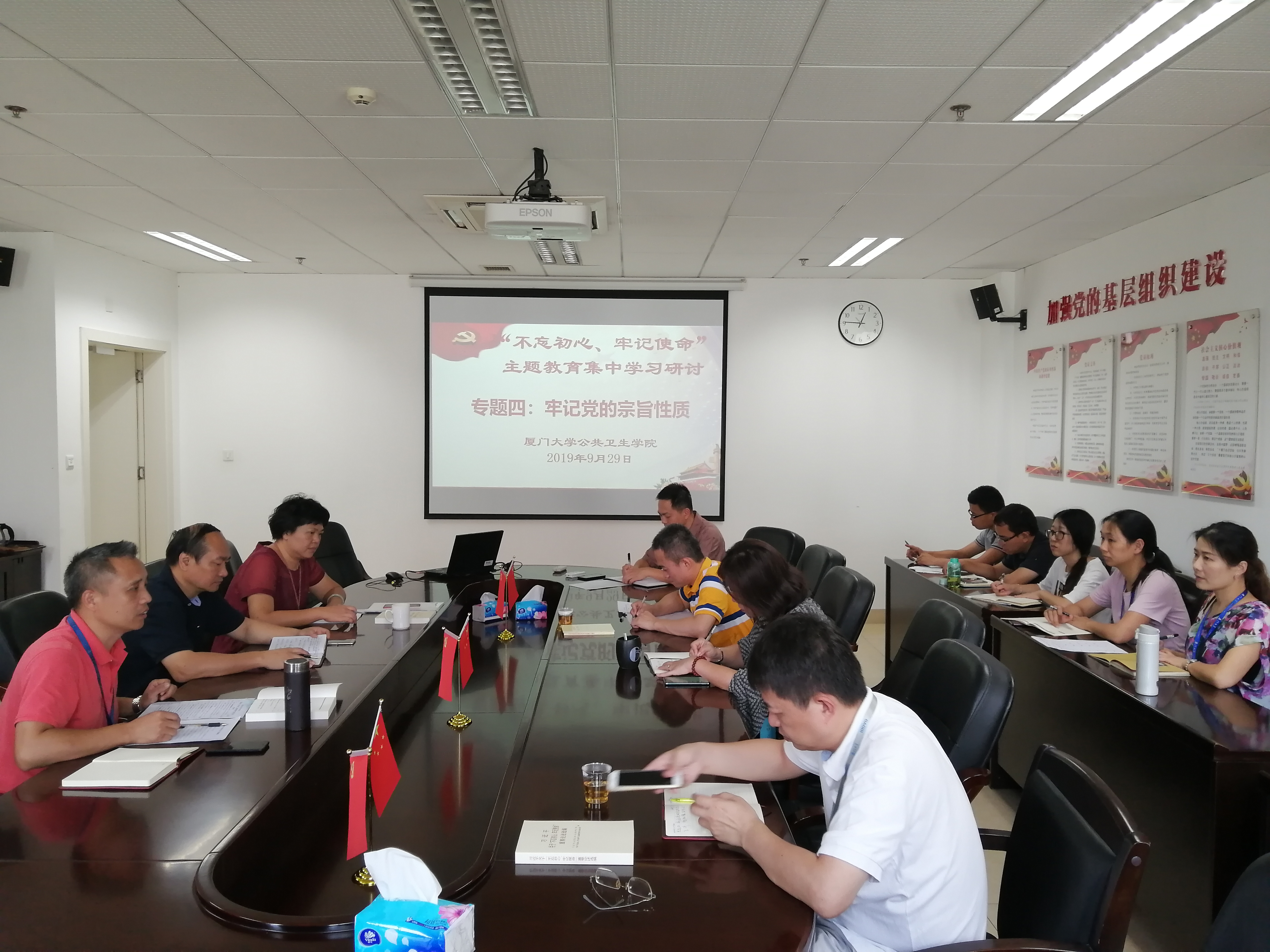 9月29日中午,学院开展“不忘初心、牢记使命”主题教育集中学习研讨,主题为牢记宗旨性质。参加人员有院党员领导干部、党委委员。本次集中学习研讨由院党委副书记杨机像主讲。