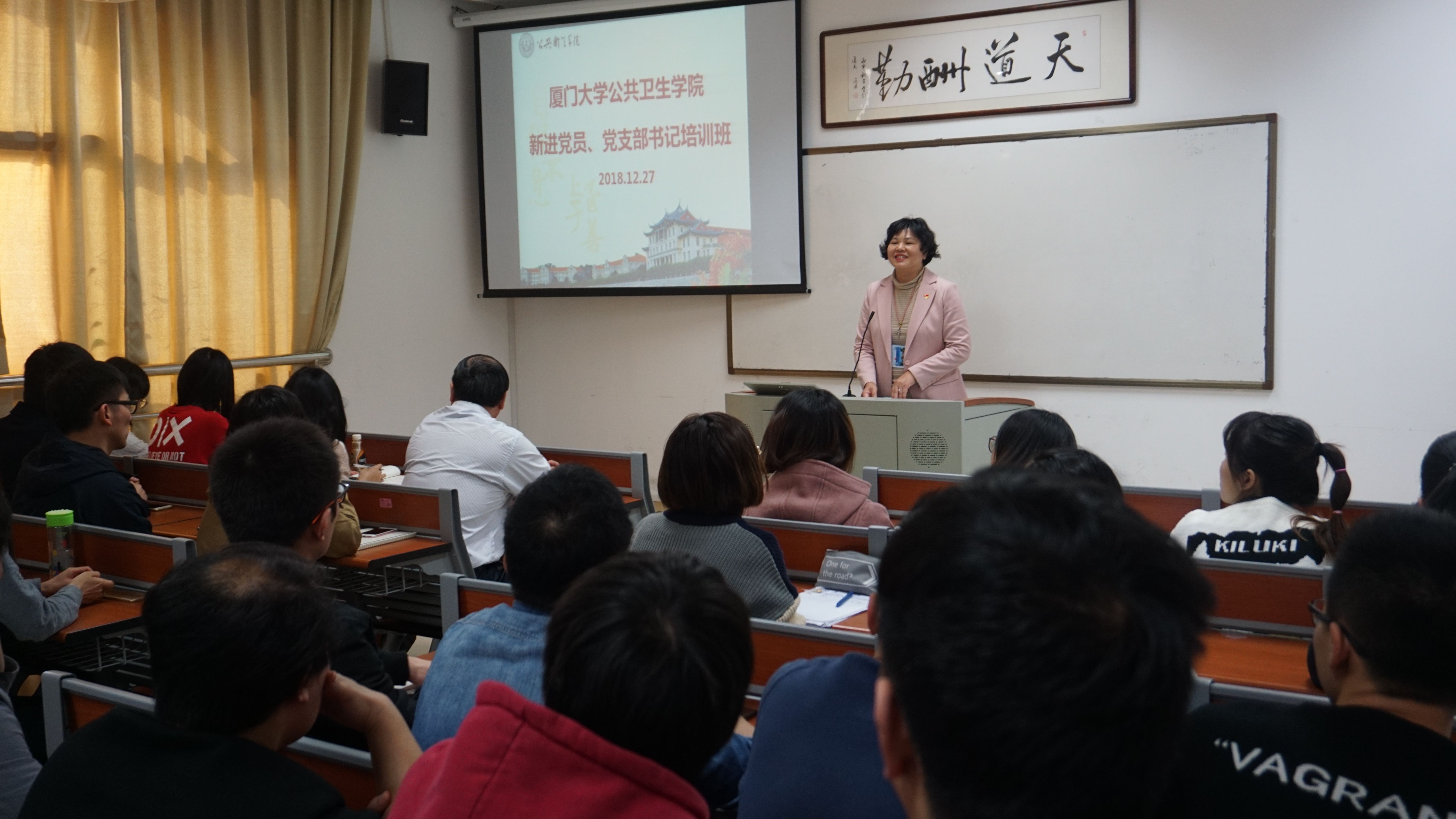 12月27日中午,公共卫生学院党委2018年新进党员、党支部书记培训班在曾宪梓楼105举行开班仪式。学院党委书记张琥、副书记黄兆君以及党支部书记、2018年新发展党员及新生党员共58人参加了仪式。