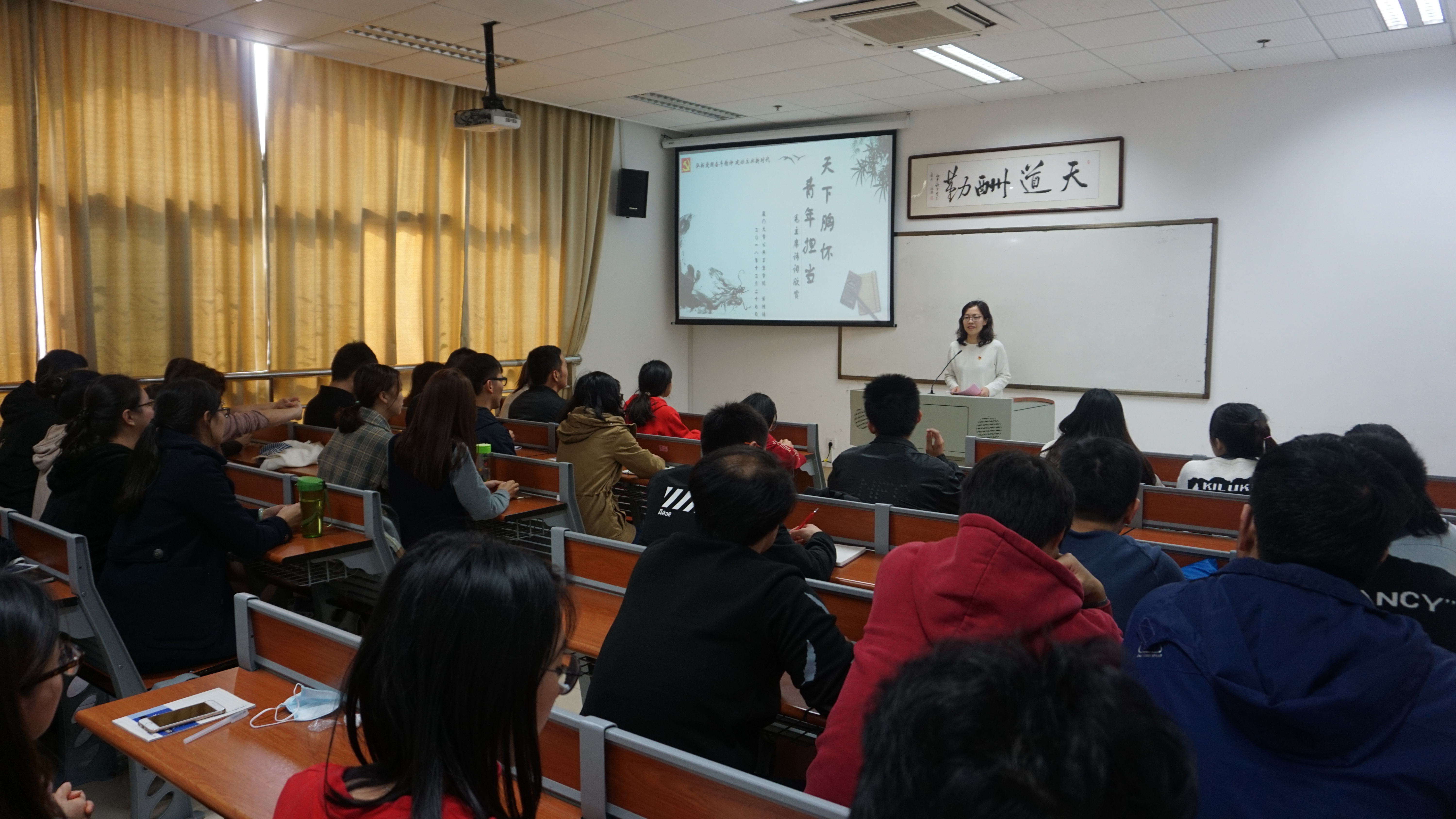 动员结束,所有学员一起合影。之后,黄佳佳老师为学员们讲授《天下情怀,青年担当——毛主席诗词欣赏》。据悉,本次培训班共有六次专题报告,分别由学院党委书记、副书记、党委委员和团委书记等讲授。