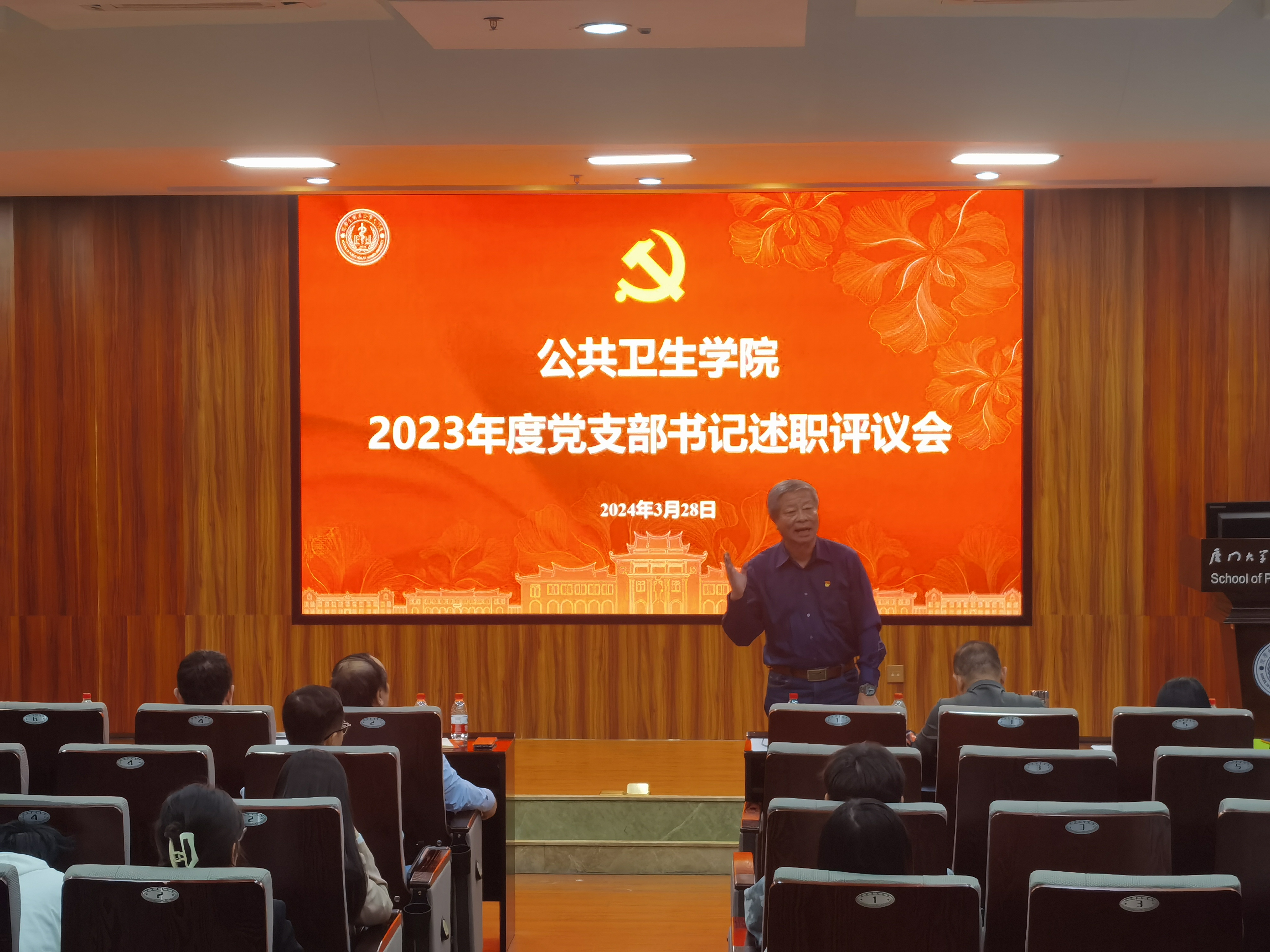 3月38日上午,公共卫生学院党委召开2023年度党支部书记述职评议会。校基层党建工作联络员黄田,学院党政领导,党委委员,党支部书记、副书记、委员,党务秘书,辅导员参加会议。会议由学院党委副书记庄曦主持。