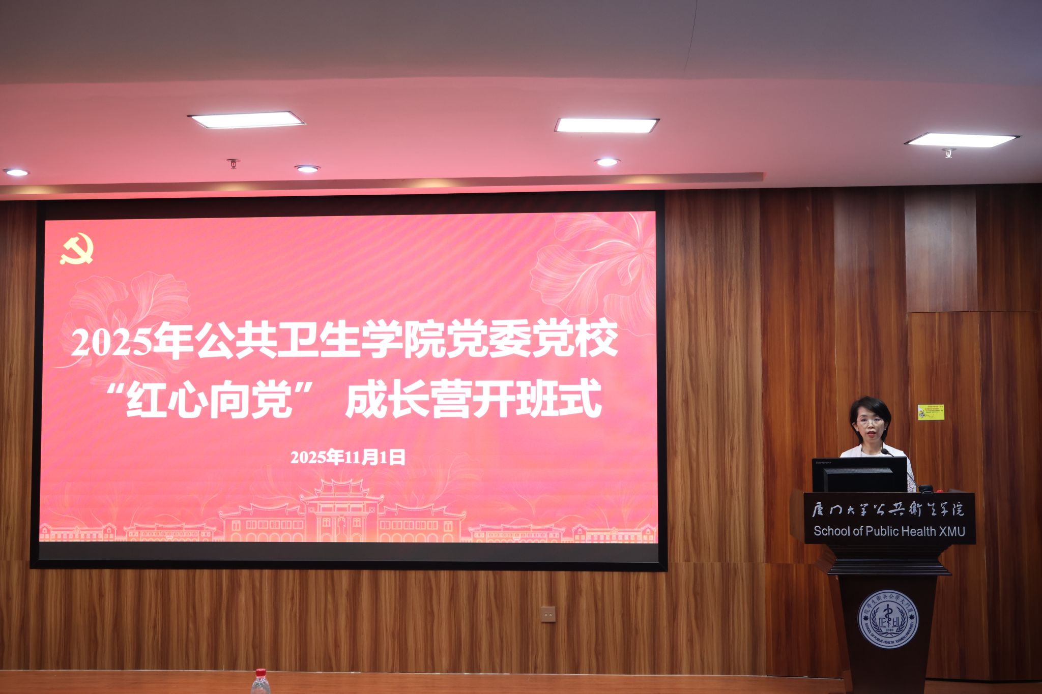 为深入学习贯彻习近平新时代中国特色社会主义思想,全面贯彻落实党的二十届三中全会、四中全会精神和全国教育大会精神,切实提升新发展党员、入党积极分子的思想政治素养与理论水平,11月1日,公共卫生学院“红心向党”成长营2025年秋季集中培训班开班式在曾宪梓楼101室举行。学院党委副书记庄曦出席并作动员讲话,马克思主义学院副教授袁华应邀讲授党课。学院新发展党员、入党积极分子参加。