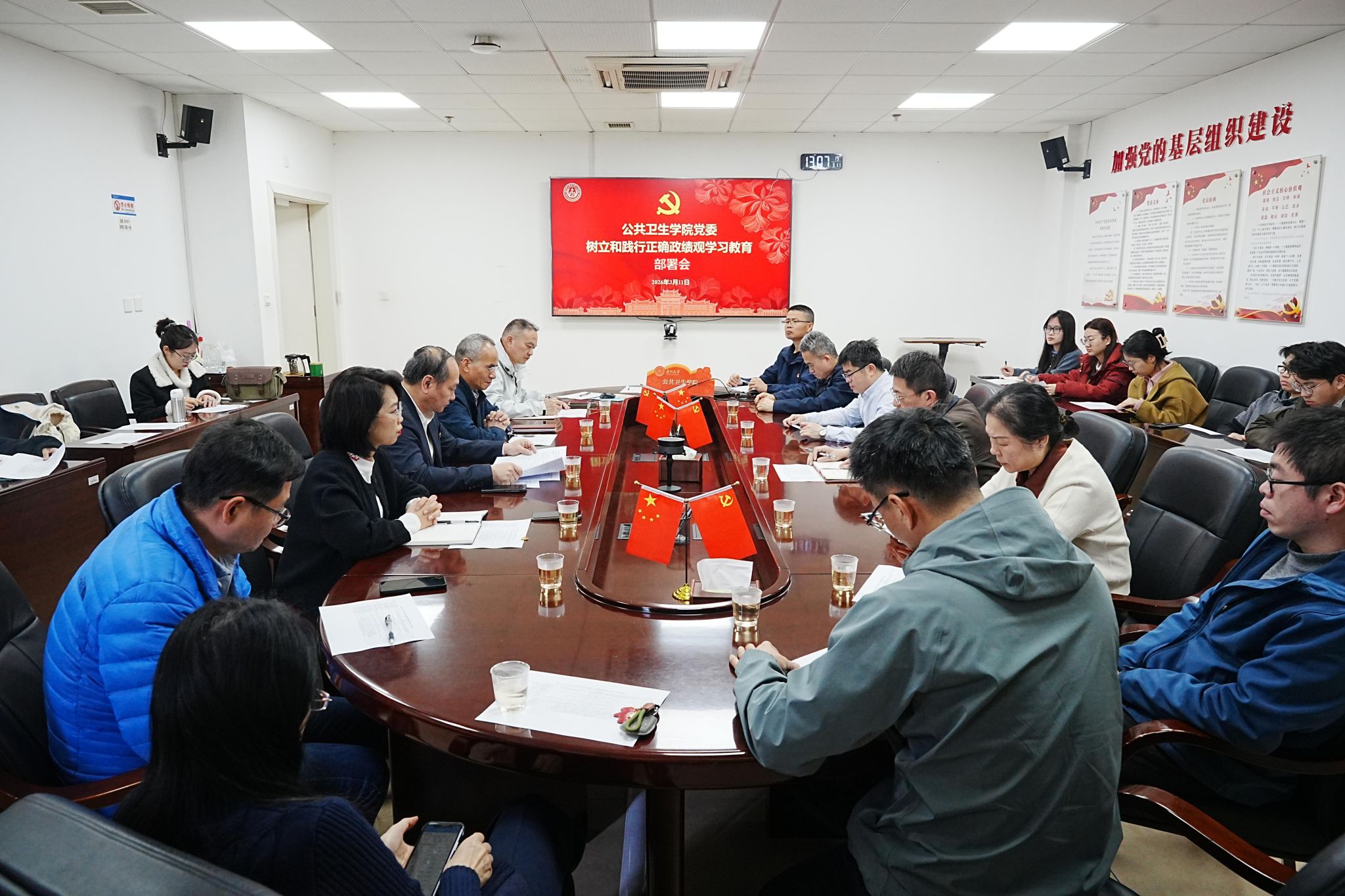 3月11日,公共卫生学院召开党委(扩大)会议,部署开展树立和践行正确政绩观学习教育。学院党委书记张琥主持会议,学院党委委员、各师生党支部书记参加会议,校基层党建联络员侯利标列席指导。