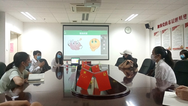 首先,支部书记郑晗盈带领大家一起学习了习近平总书记在今年全国两会上的重要讲话精神。接着,她介绍了2020年全民营养周的主题,通过回顾免疫系统构成、作用及其存在缺陷建立基本知识背景,结合各个营养素提出平衡免疫力的可行方案。