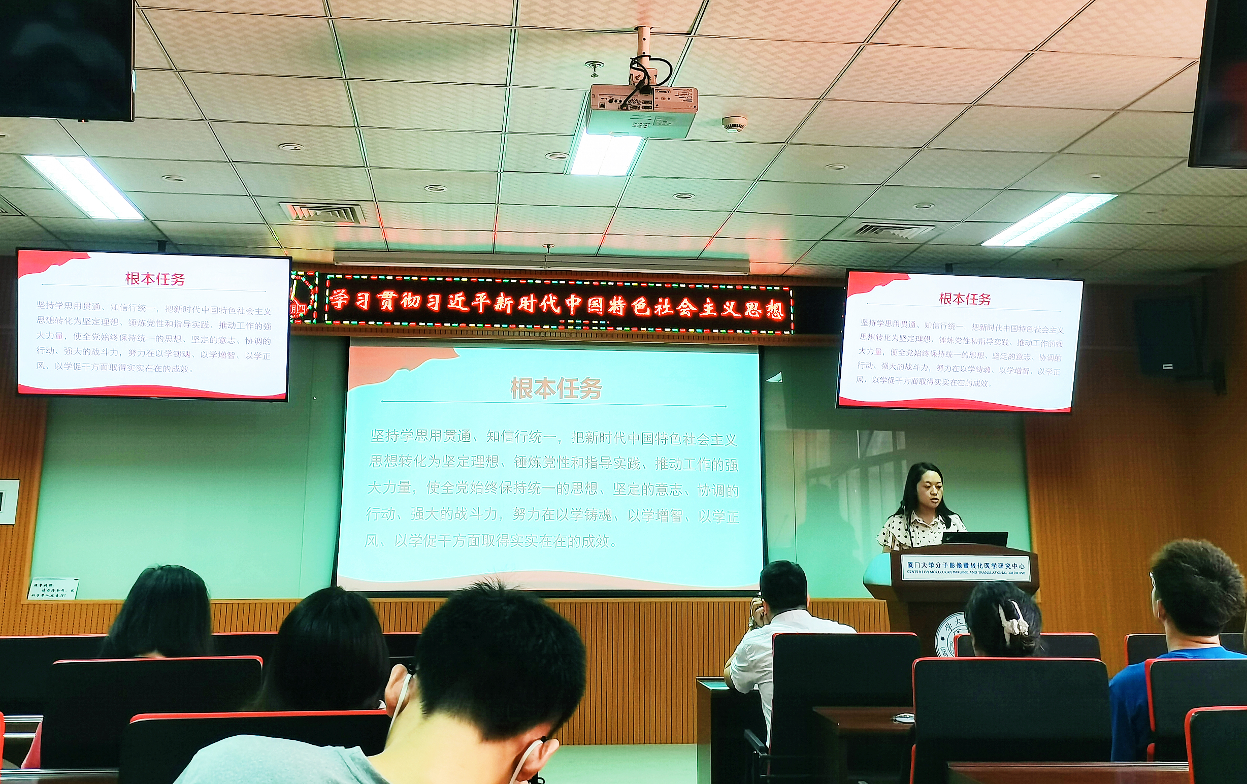 5月5日中午,为进一步深入学习贯彻习近平新时代中国特色社会主义思想,教工第四党支部联合研究生第三、第四党支部在分子影像410报告厅召开学习贯彻习近平新时代中国特色社会主义思想主题教育联合学习会。刘刚教授主持会议并做领学,三个支部的全体党员和入党积极分子近百人参加了本次集中学习。