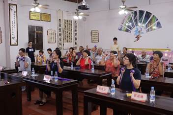 讲座由厦门大学公共卫生学院老年健康研究中心何凌骁副教授主讲,何老师结合自身研究方向,以“肌肉衰老的科普与预防”为主题,向老人们介绍了人体器官及功能的衰退时间、肌肉的重要性、肌肉的衰老、肌少症病因及预防等内容,以通俗易懂的科普知识提高老年人对肌少症的预防意识。在讲座的第二环节,何老师通过简单的抗阻训练帮助老年人掌握预防肌少症的力量训练方法,训练内容包括上肢锻炼、腰腹锻炼、下肢锻炼三部分,老人们手握弹力带认真学习动作要领,活动现场学习氛围浓厚,欢声笑语不断。