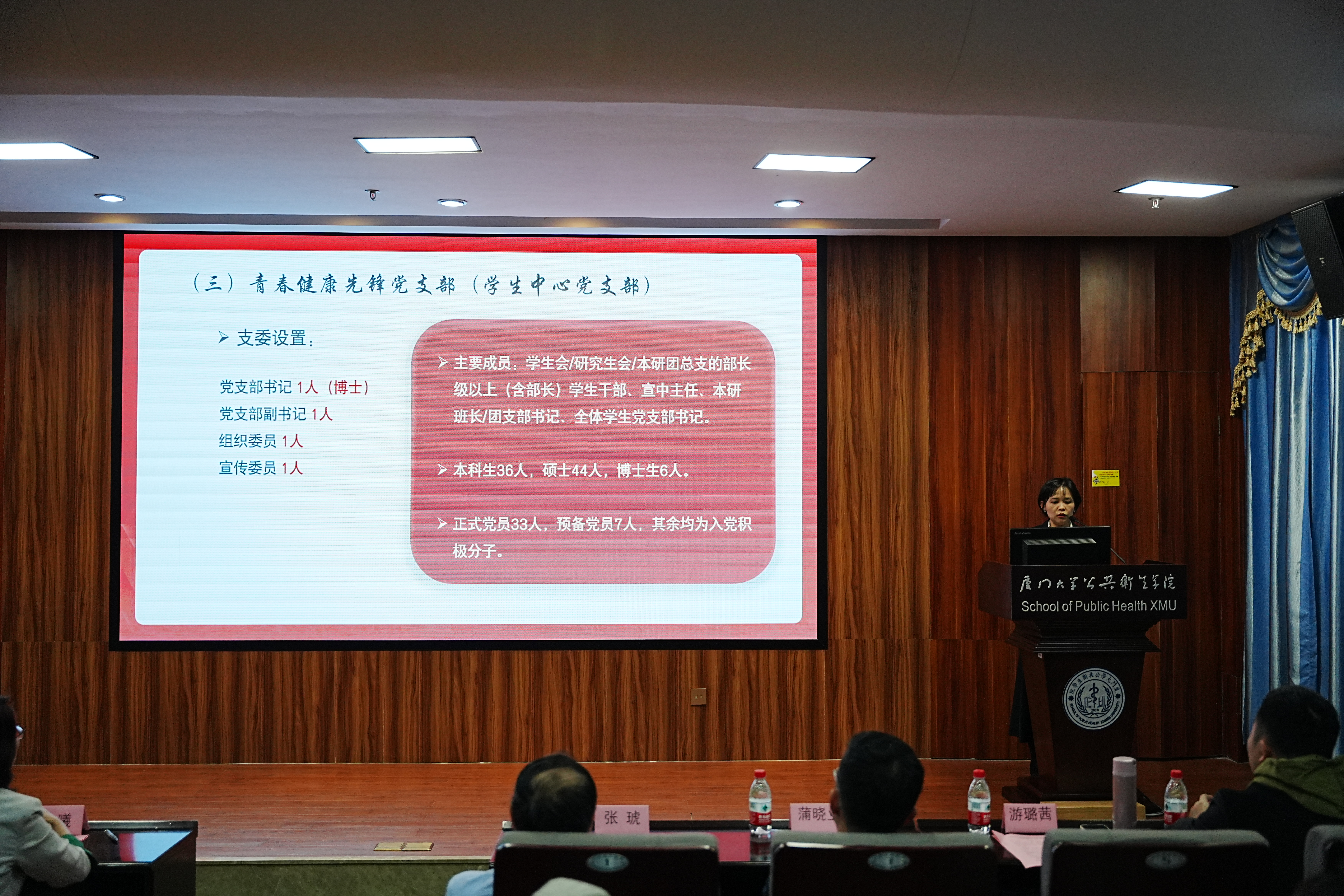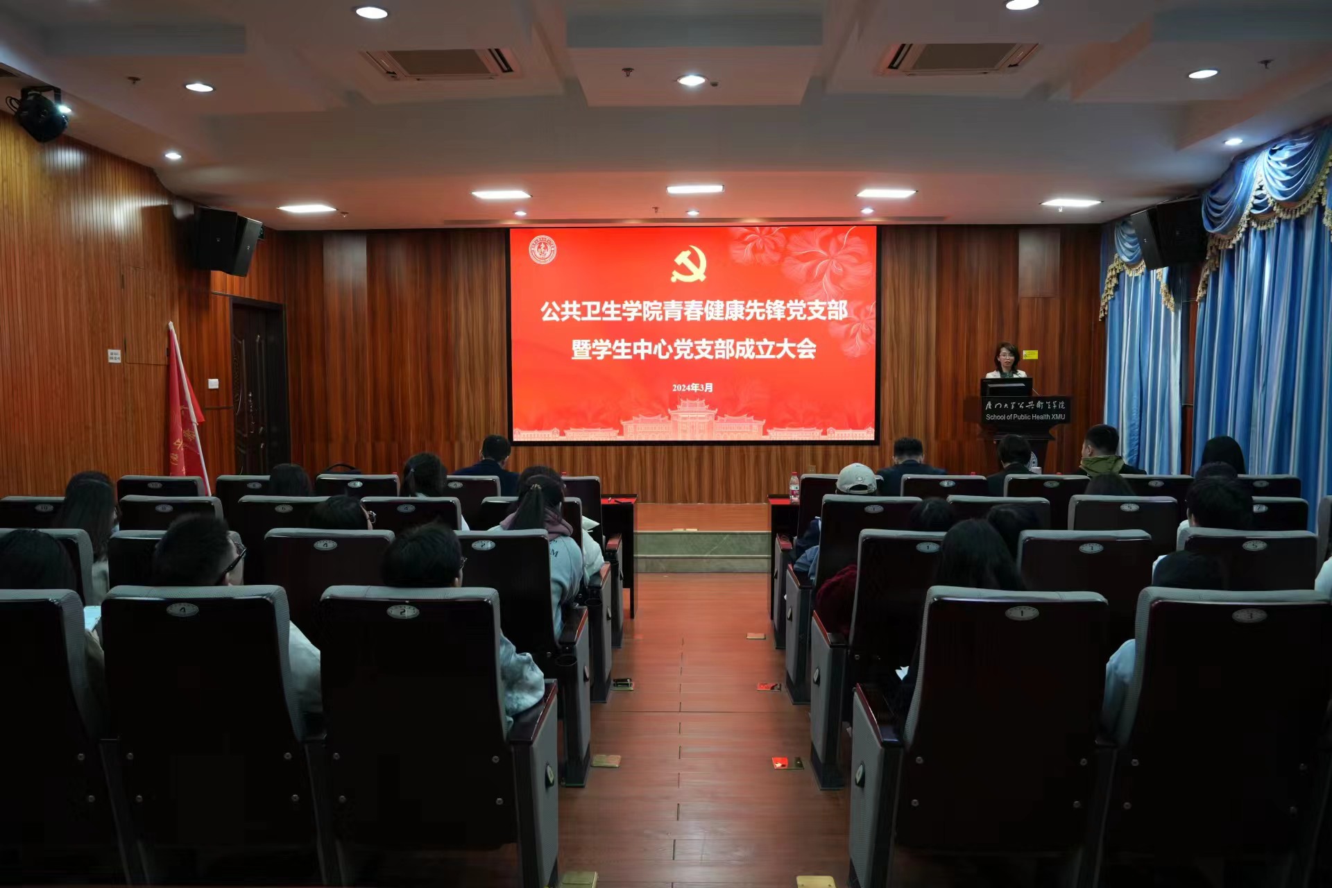 2024年3月21日中午,厦门大学公共卫生学院青春健康先锋党支部暨学生中心党支部成立大会在曾宪梓楼101会议室召开。学院党委书记张琥,党委副书记庄曦、蒲晓业,学院党务秘书,全体辅导员及本研学生代表参会。