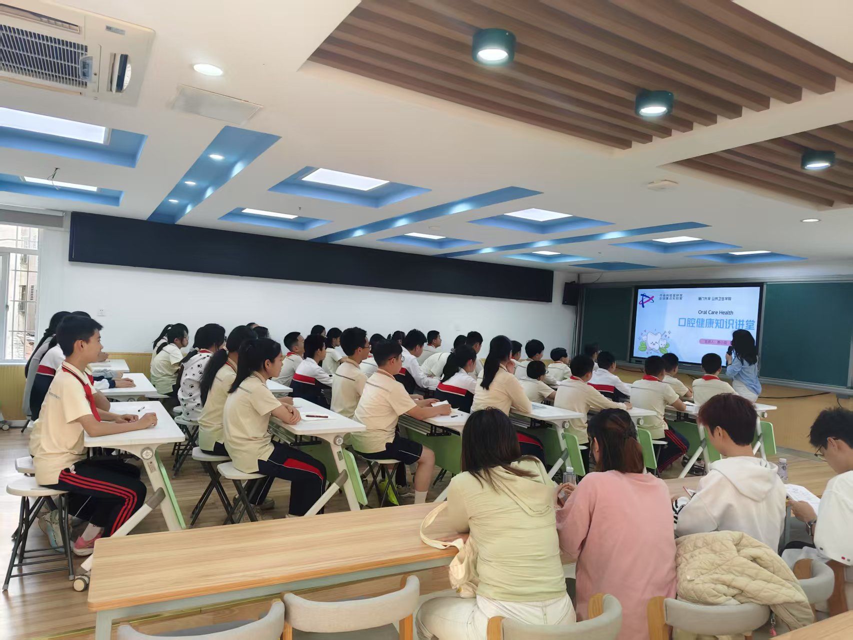 签约仪式后,教工第一党支部成员陈小旋老师为学生们开展了“小牙齿,大健康”口腔健康科普讲座。她通过动画演示和实物模型讲解了护齿知识,并指导学生现场练习巴氏刷牙法,强调了“少吃甜食、及时漱口”的重要性。