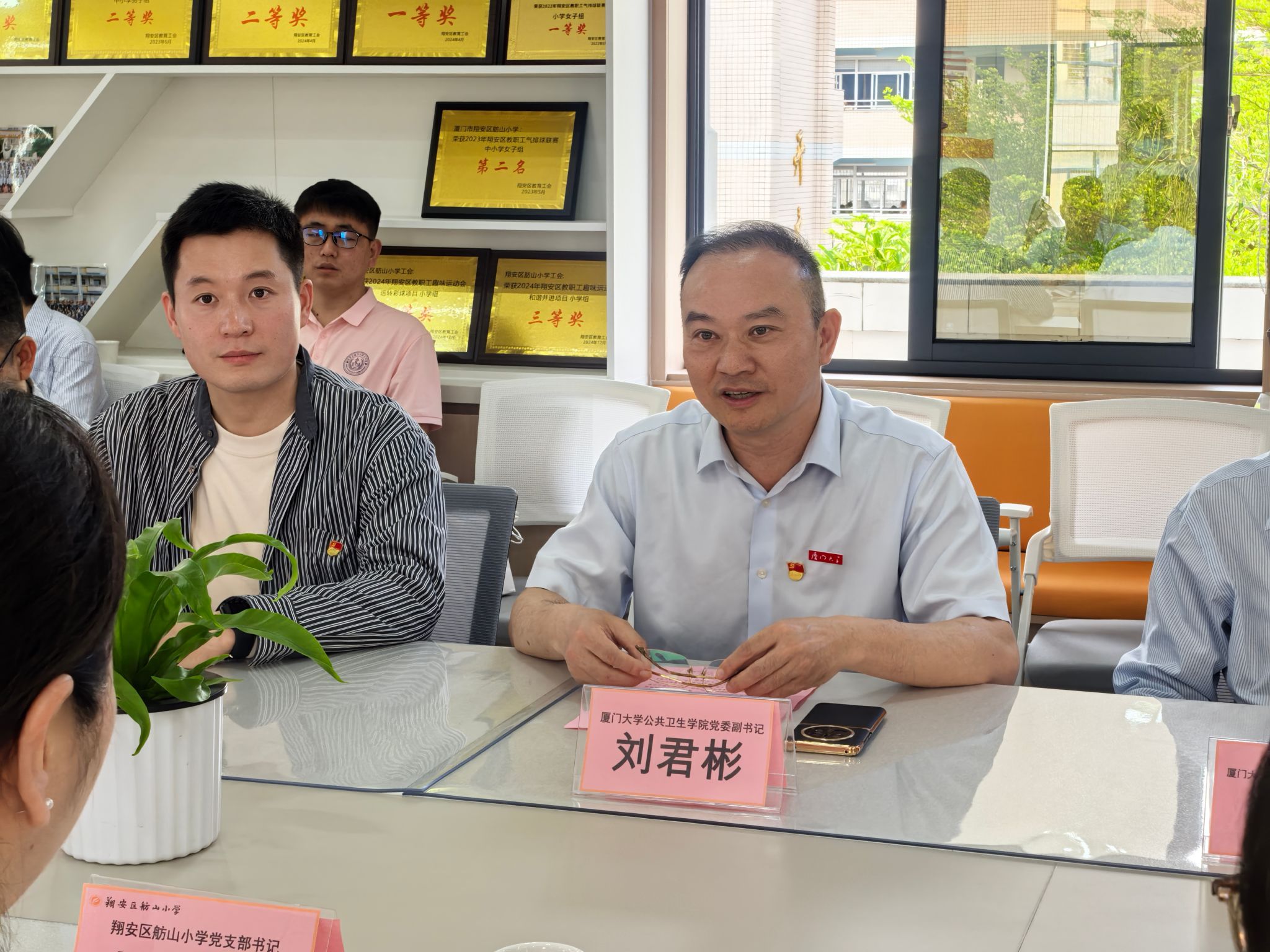 4月18日,我院教工第一党支部与翔安区舫山小学党支部,在舫山小学举行共建签约仪式暨“童心向健康,卫爱舫山行”主题党日活动。学院党委副书记刘君彬、教工第一党支部书记张洁,舫山小学党支部书记荆玉静、党支部副书记兼副校长陈理欧、副校长陈建立等出席活动。